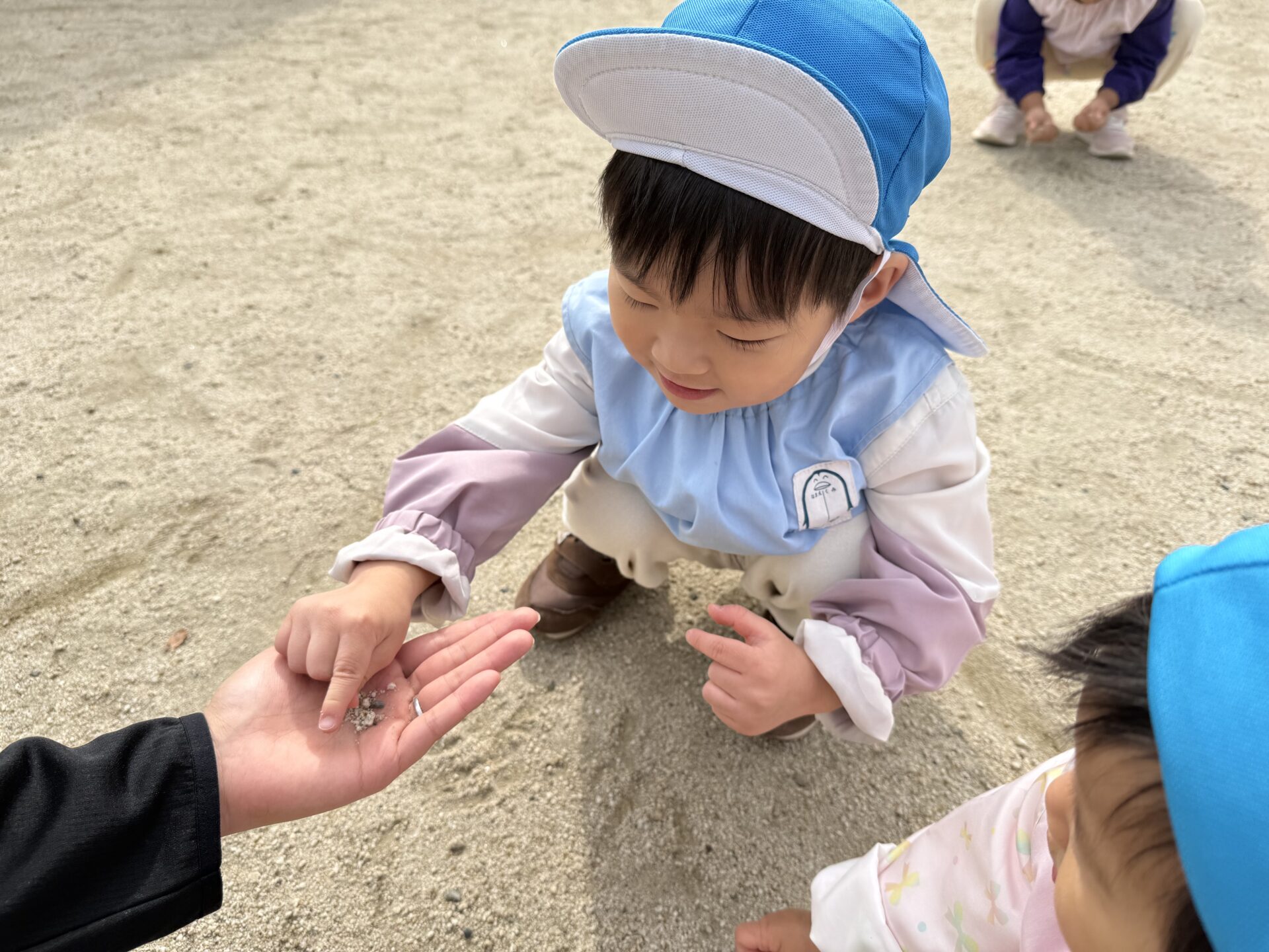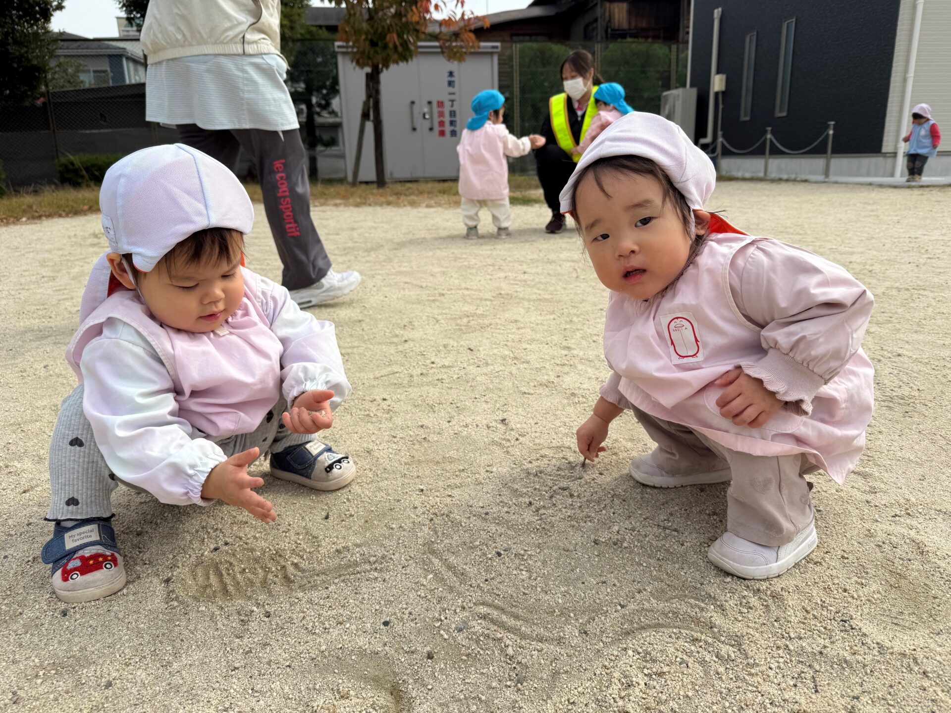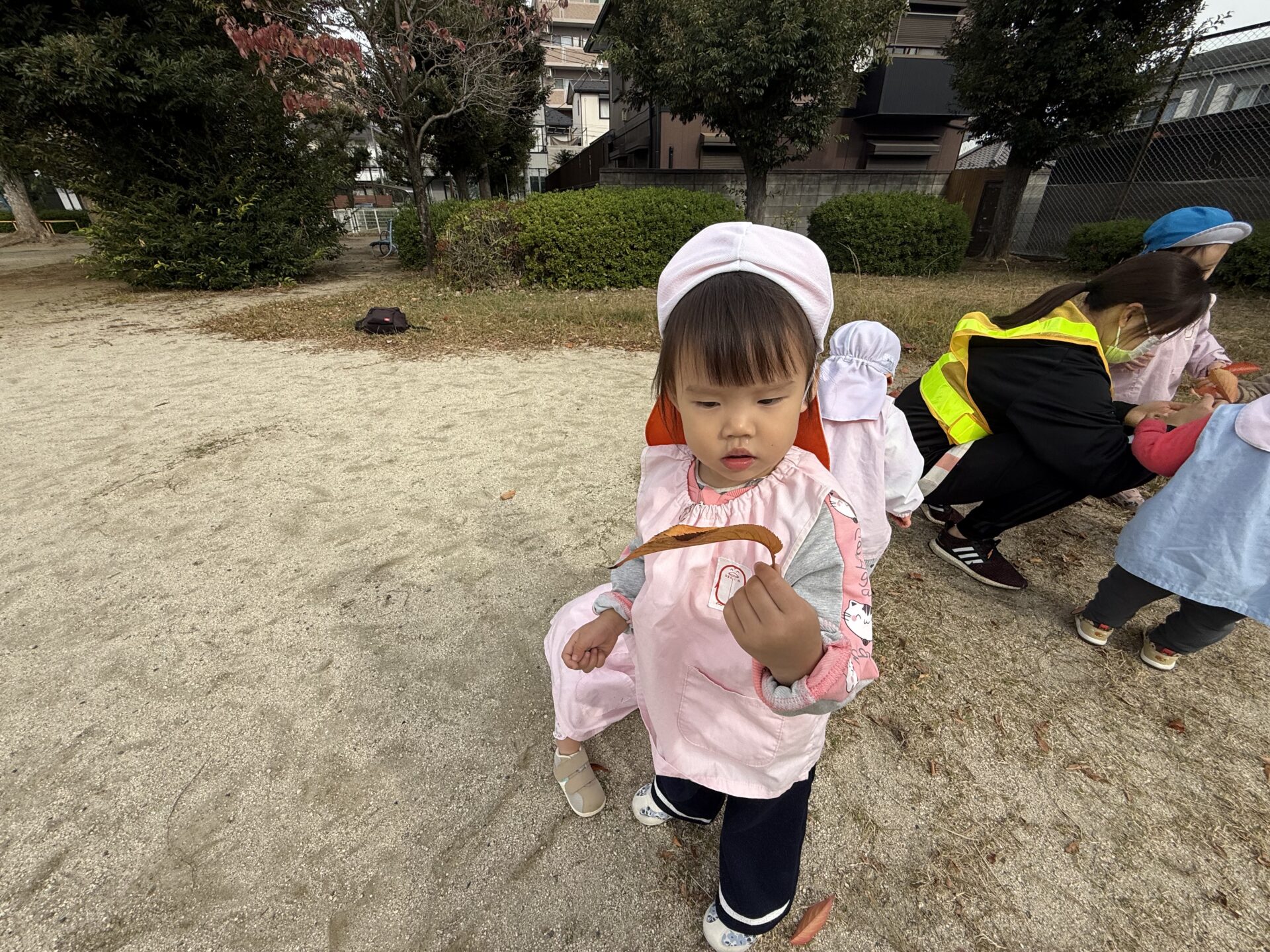 また、かけっこしてたくさん身体を動かした後に、公園のグランドに落ちていた綺麗な色の落ち葉を集めたり、地面にお絵描きしたり、いろいろなカタチの石を集めて楽しく遊んでいました😊