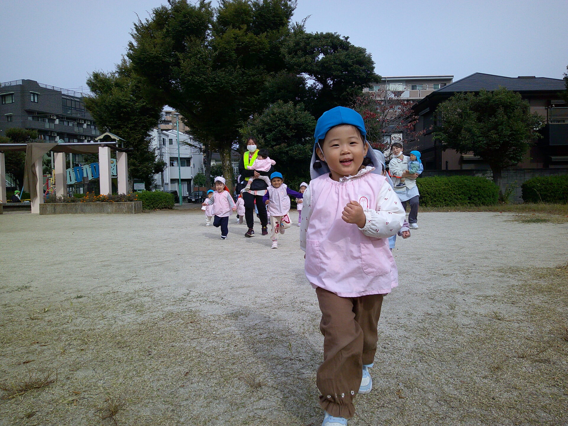 今日の予定としてはキッズランド川口金山町園に行って運動会の合同練習の予定でしたが、子ども達も運動会の練習を 頑張っていたこともあり、各園での練習となったので、永瀬公園へお散歩がてら公園のグランドでかけっこ練習をしてきました🤗