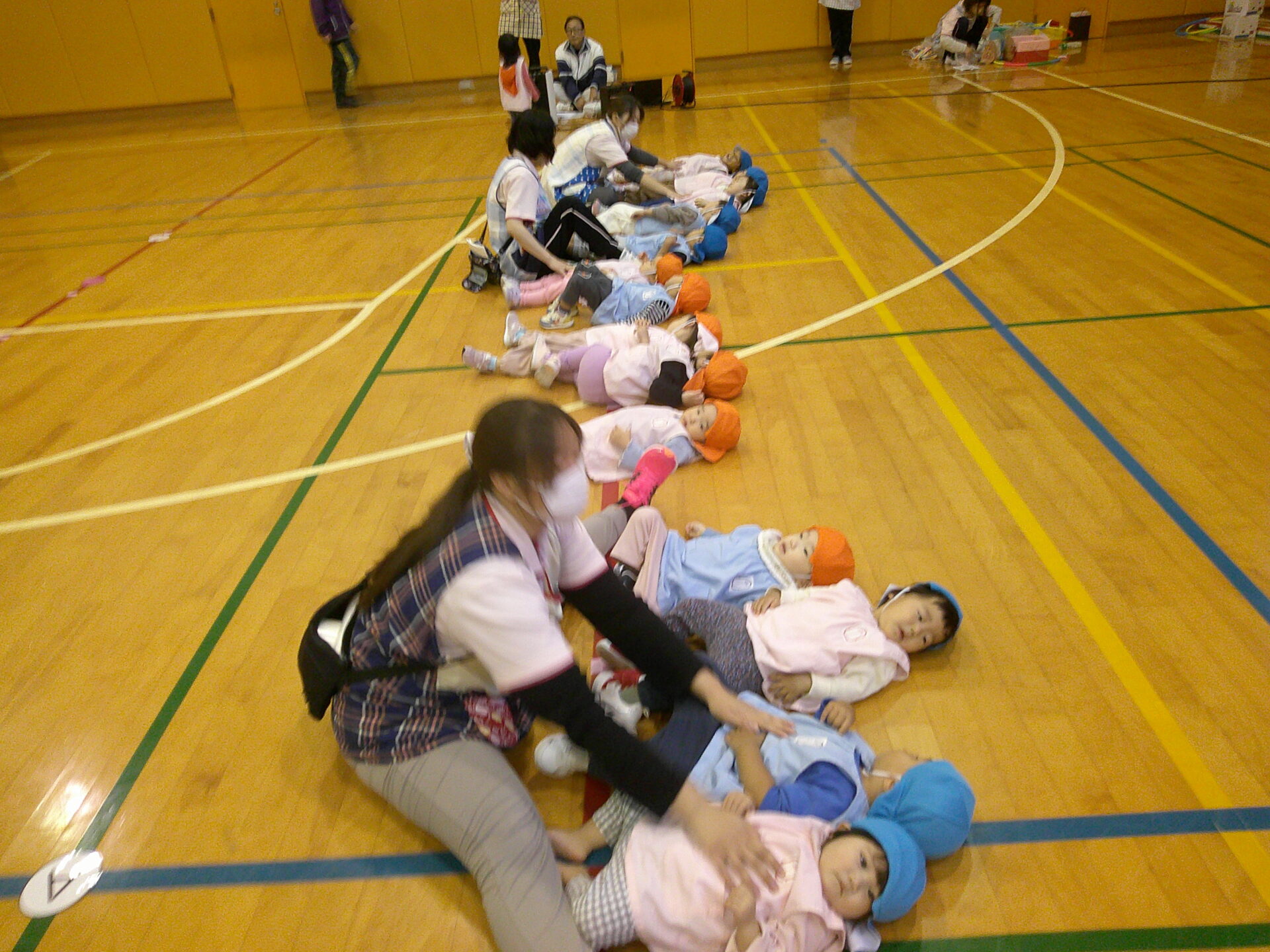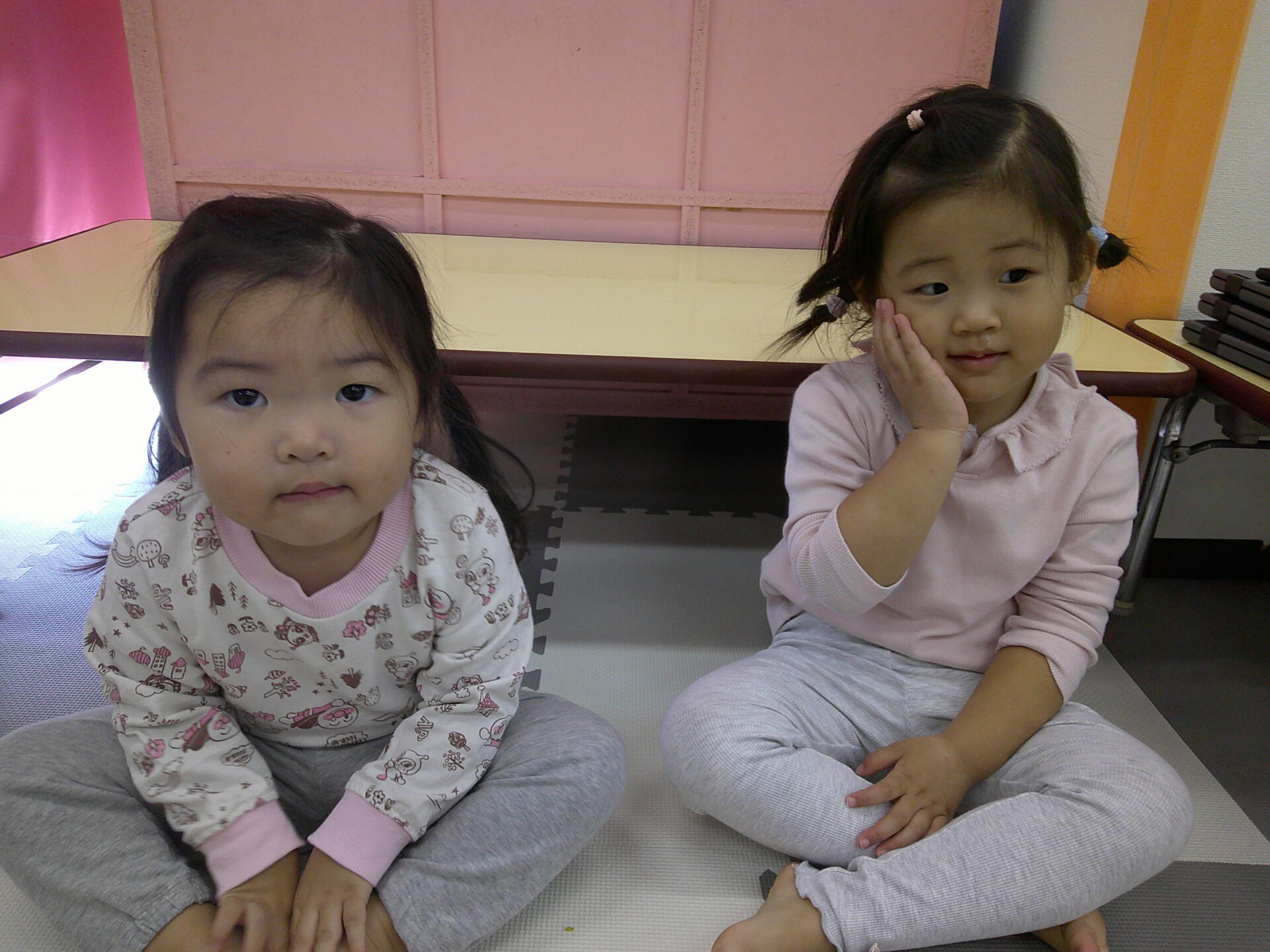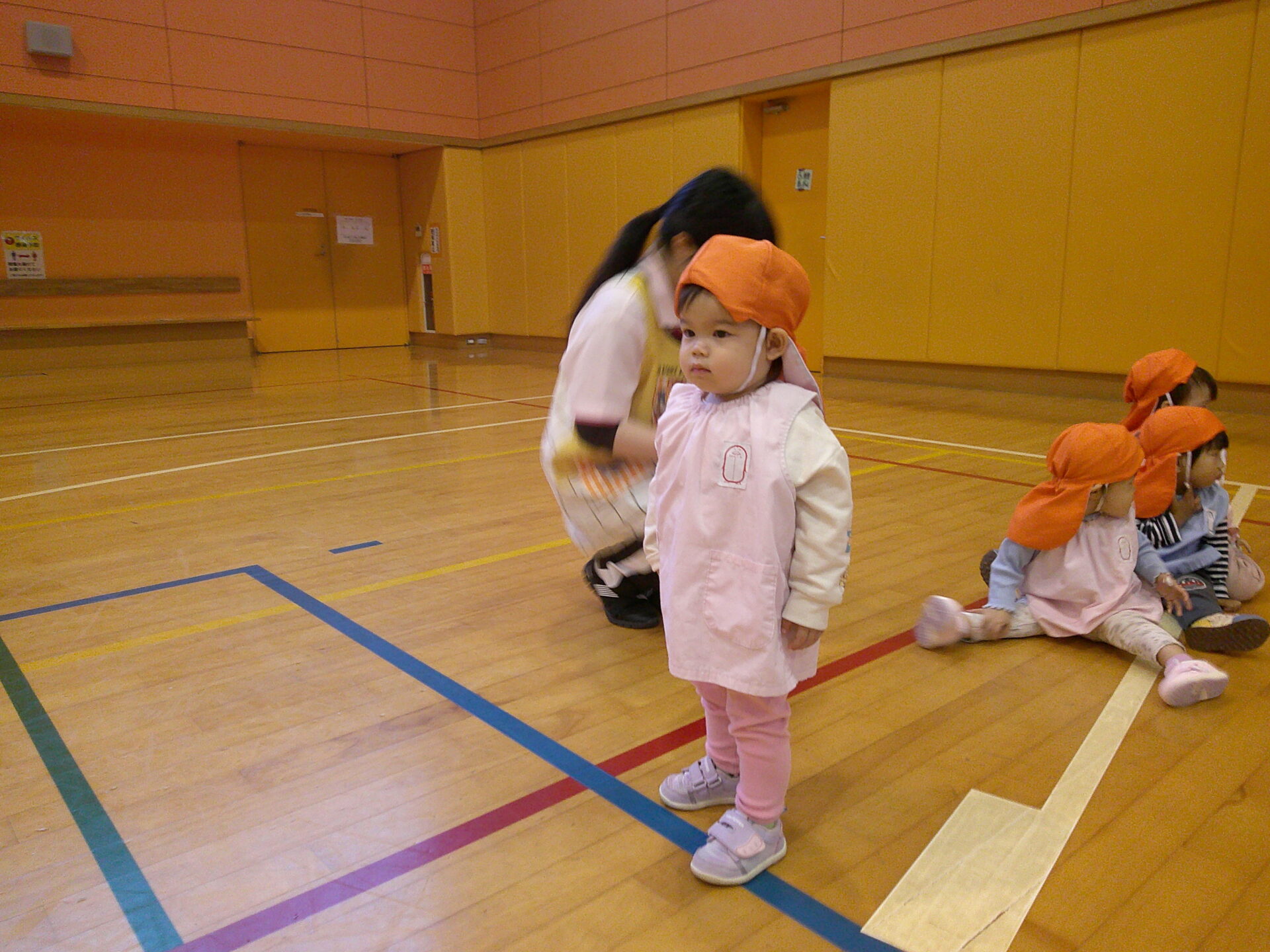 ひよこぐみのお友だちは最初はごろーんしている子がいましたが、先生がカメラを向けると…