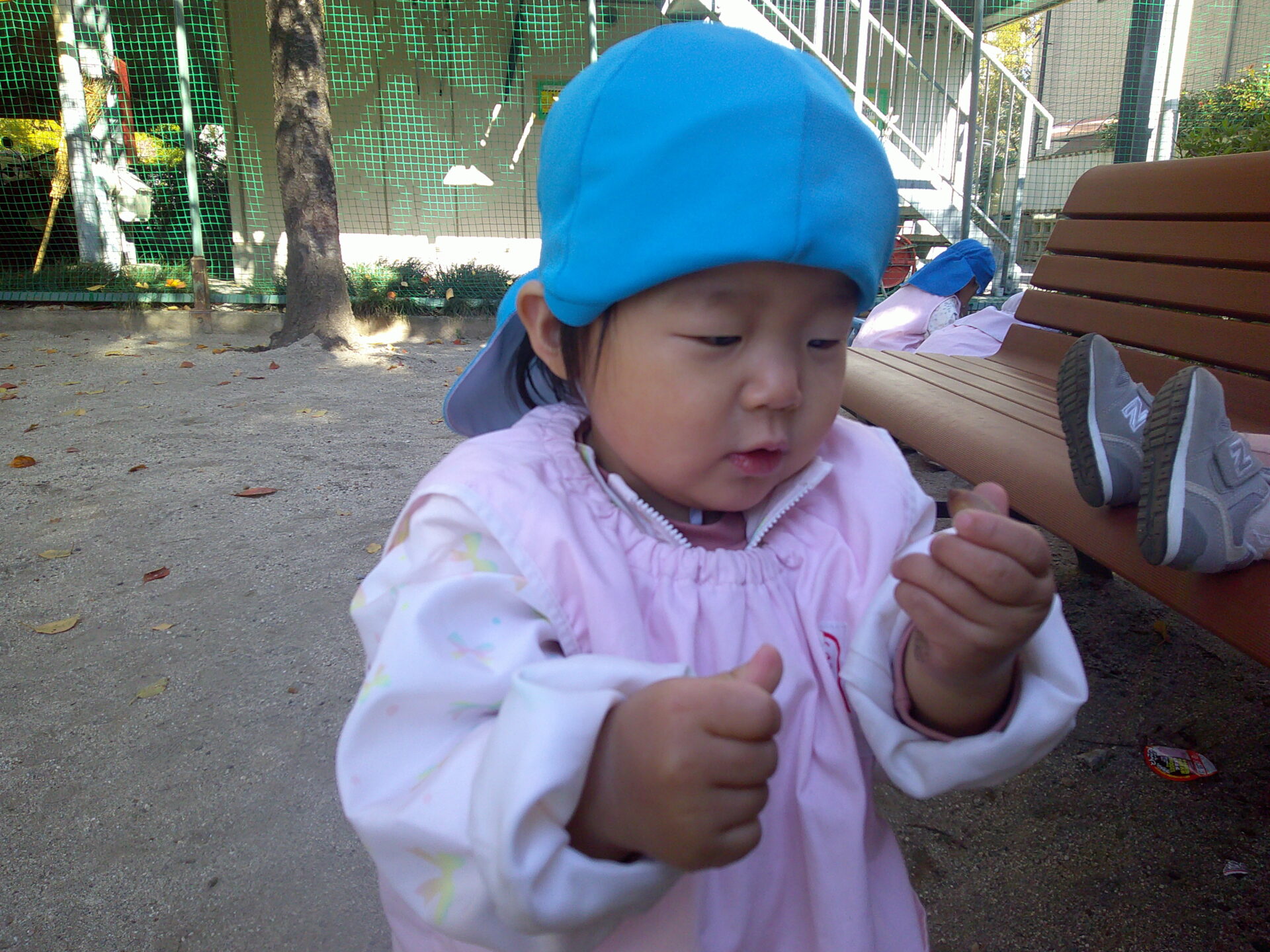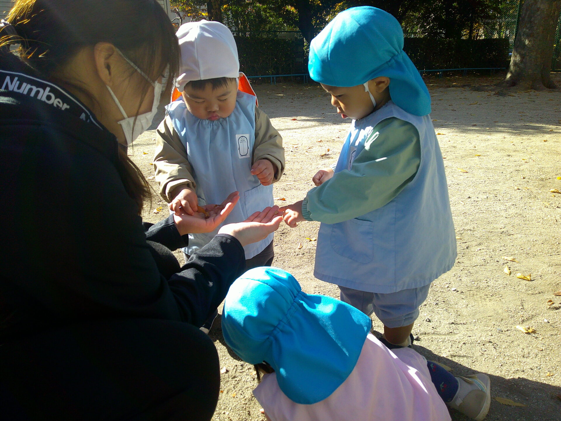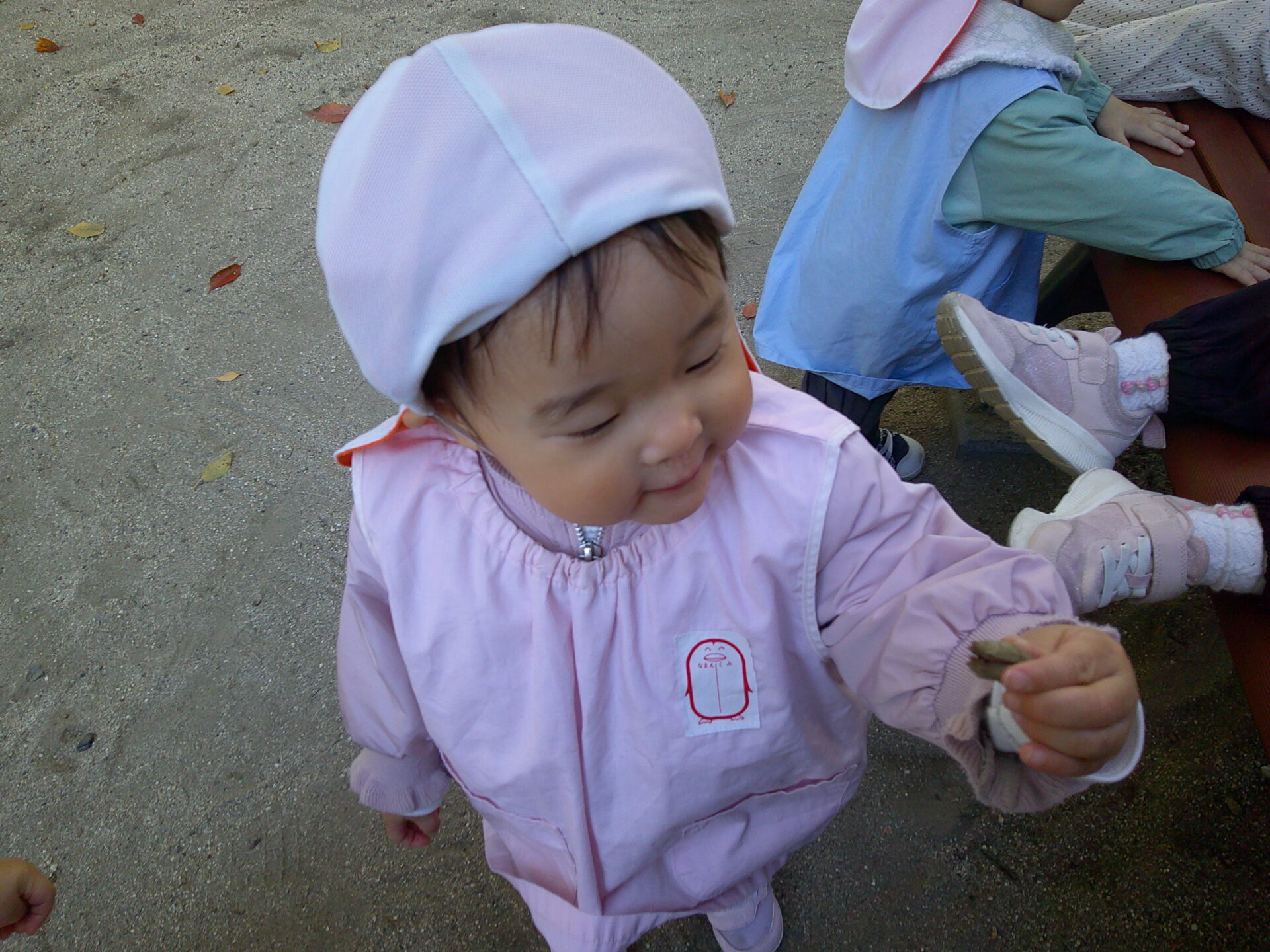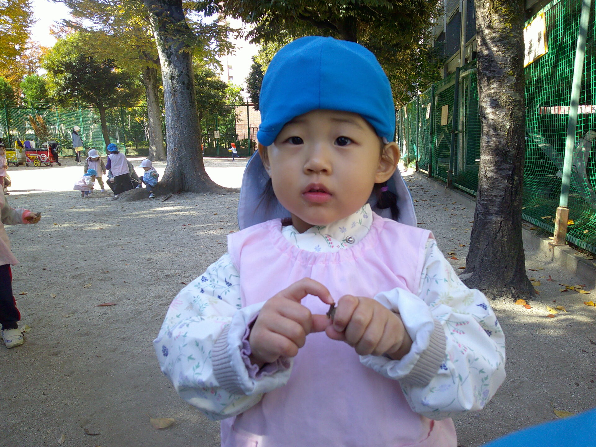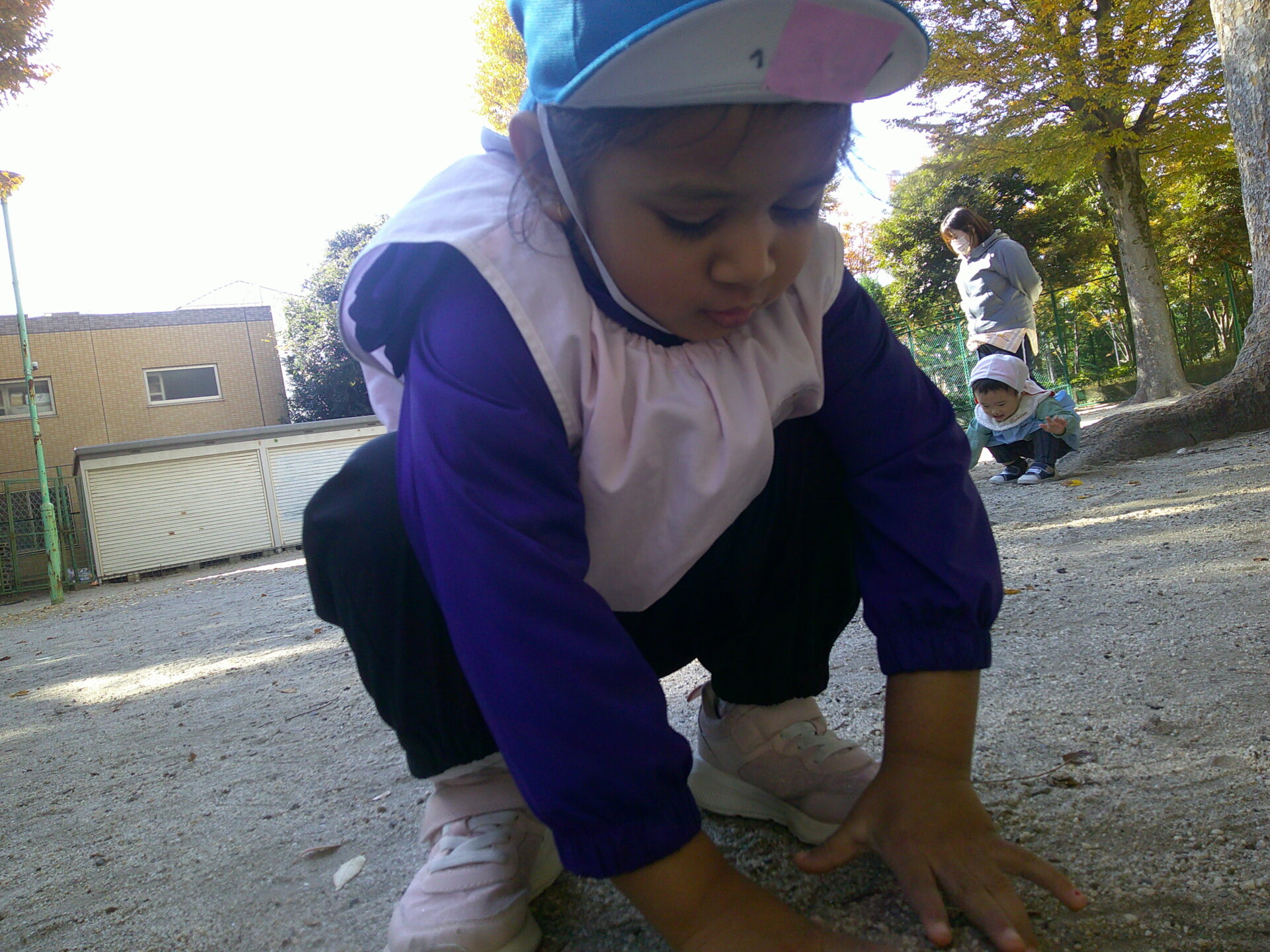 公園に到着すると、さっそく大きなどんぐりを見つけたようで、先生に嬉しそうに見せに来てくれました🥰