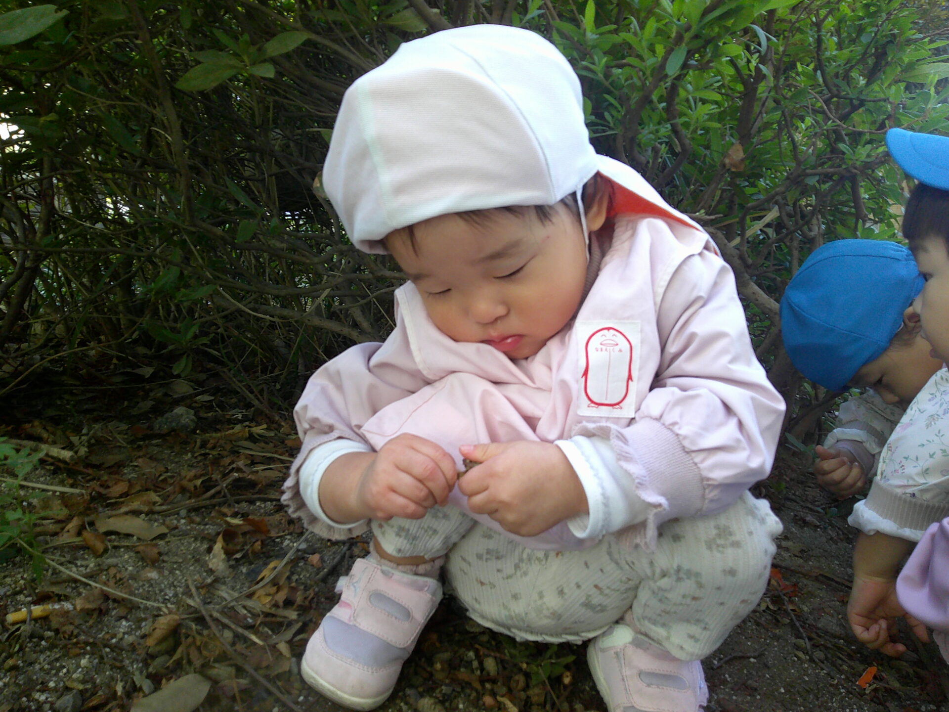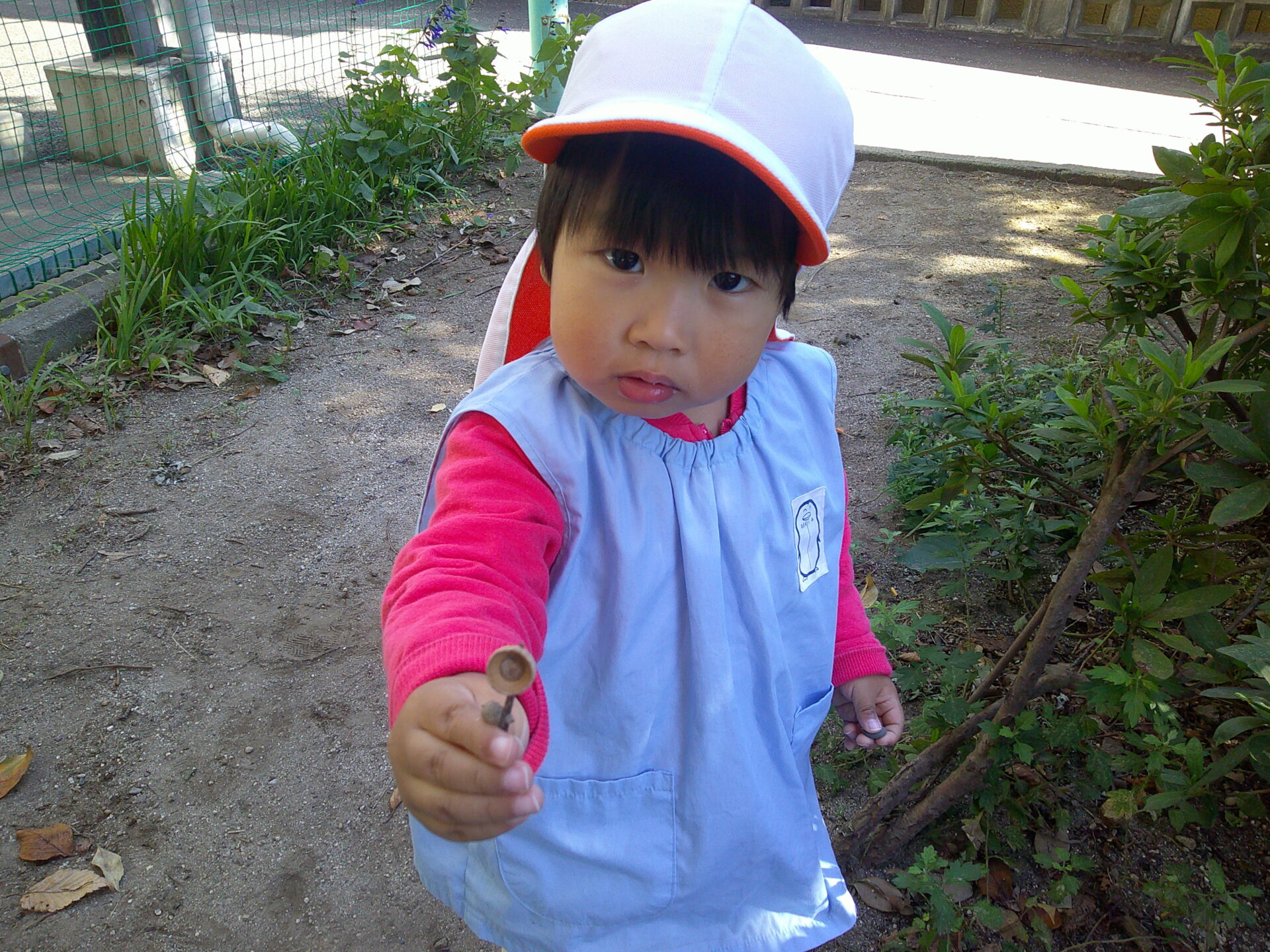 さっそくおおきな帽子付きのどんぐりを見つけて「せんせい、あったよ」と見せに来てくれました!