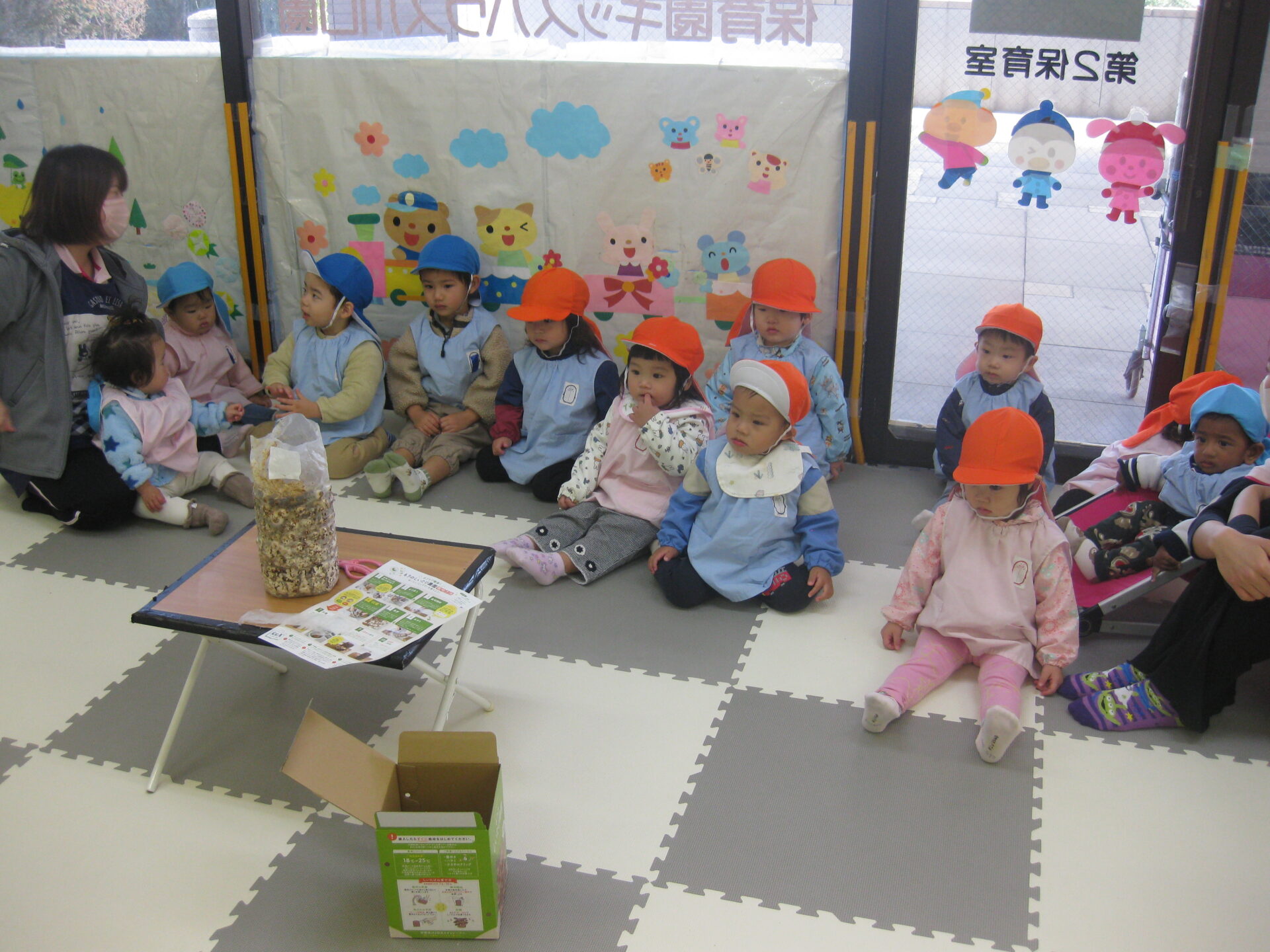 食育活動の一環として、今日からお部屋の中でしいたけ栽培を始めました!🍄