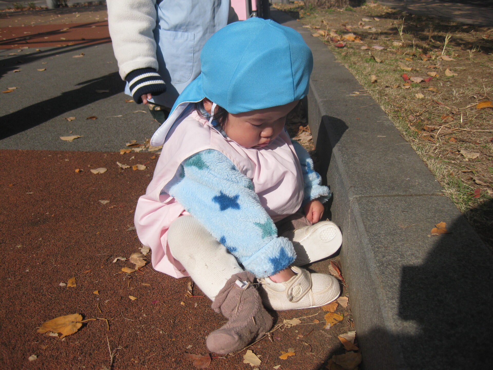 ひよこ組のお友達、何をしているのかな~と覗くとお靴の中に落ち葉をたくさん入れていました🍂