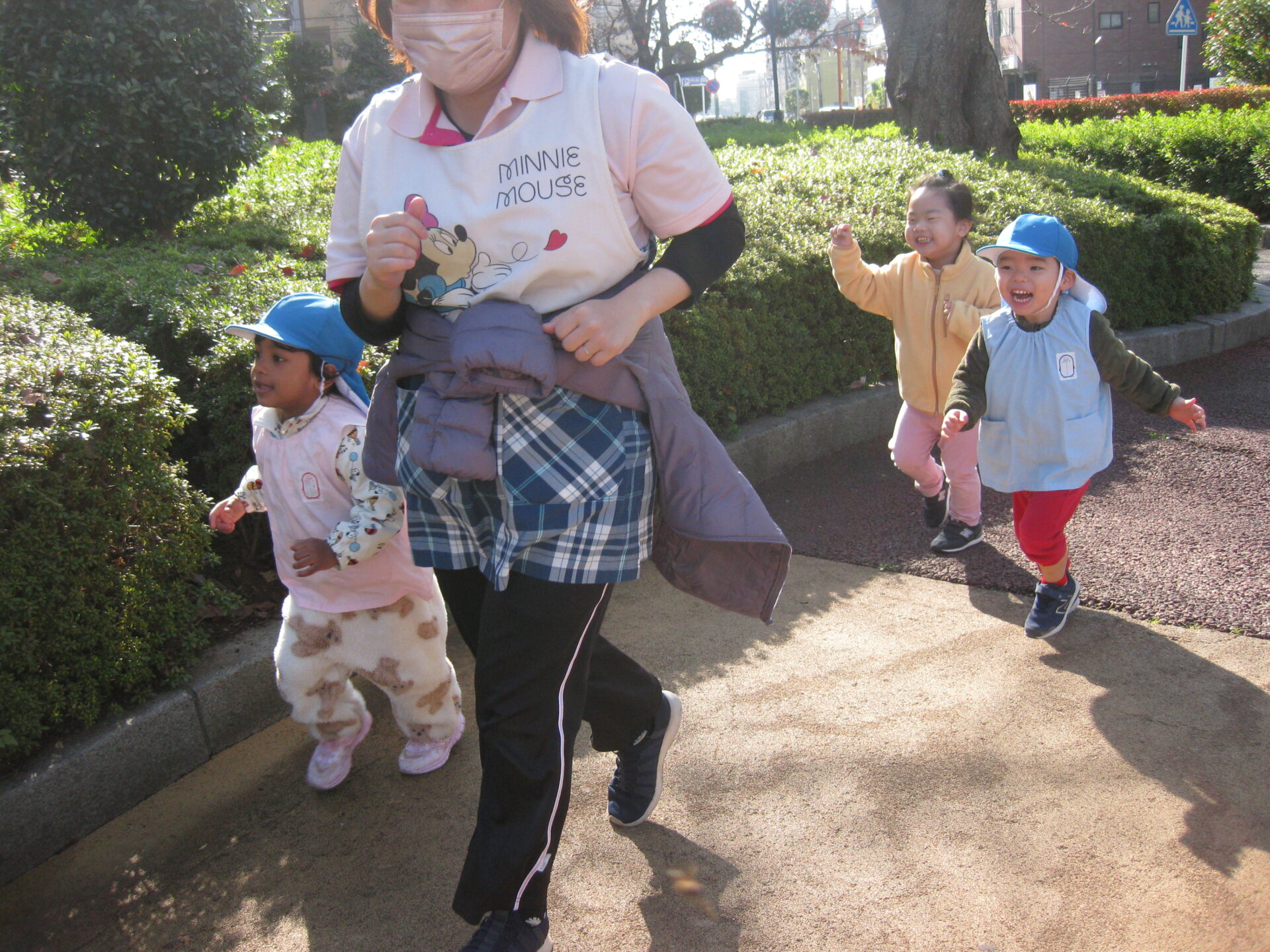 広場に到着し、みんなで噴水を見たり追いかけっこをして遊びました😆