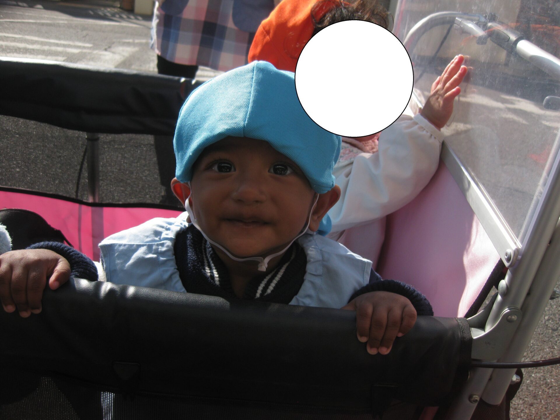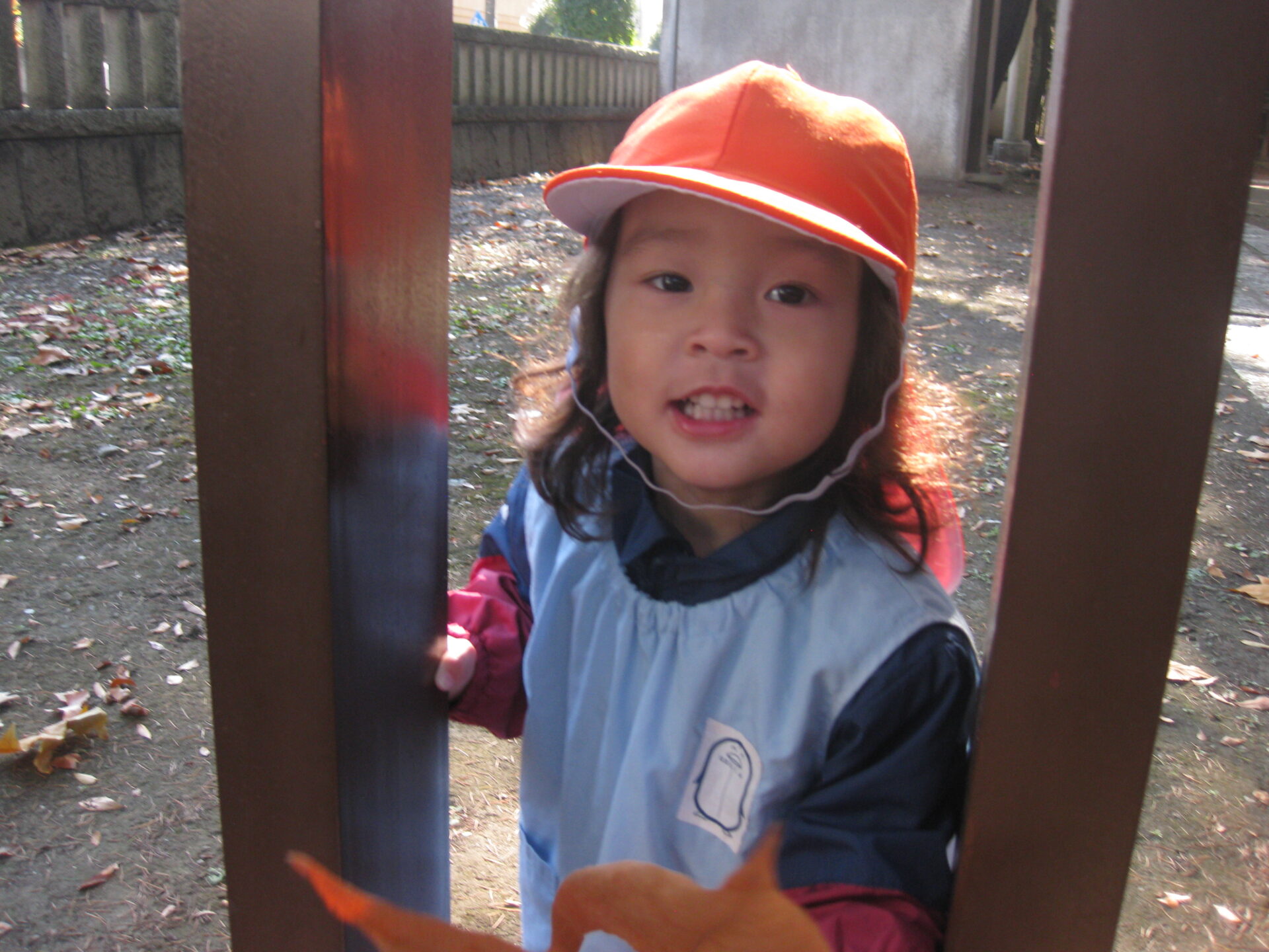葉っぱを手に取り、「見て~」と言っているかのような笑顔です🥰