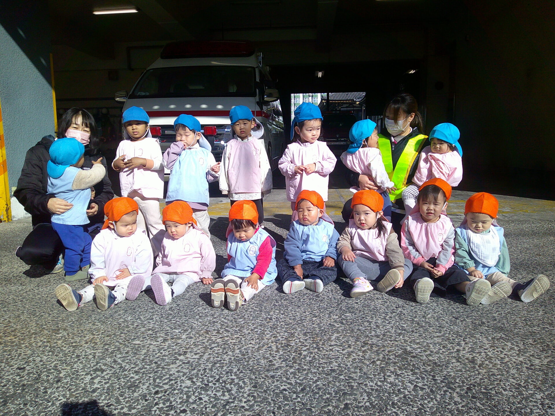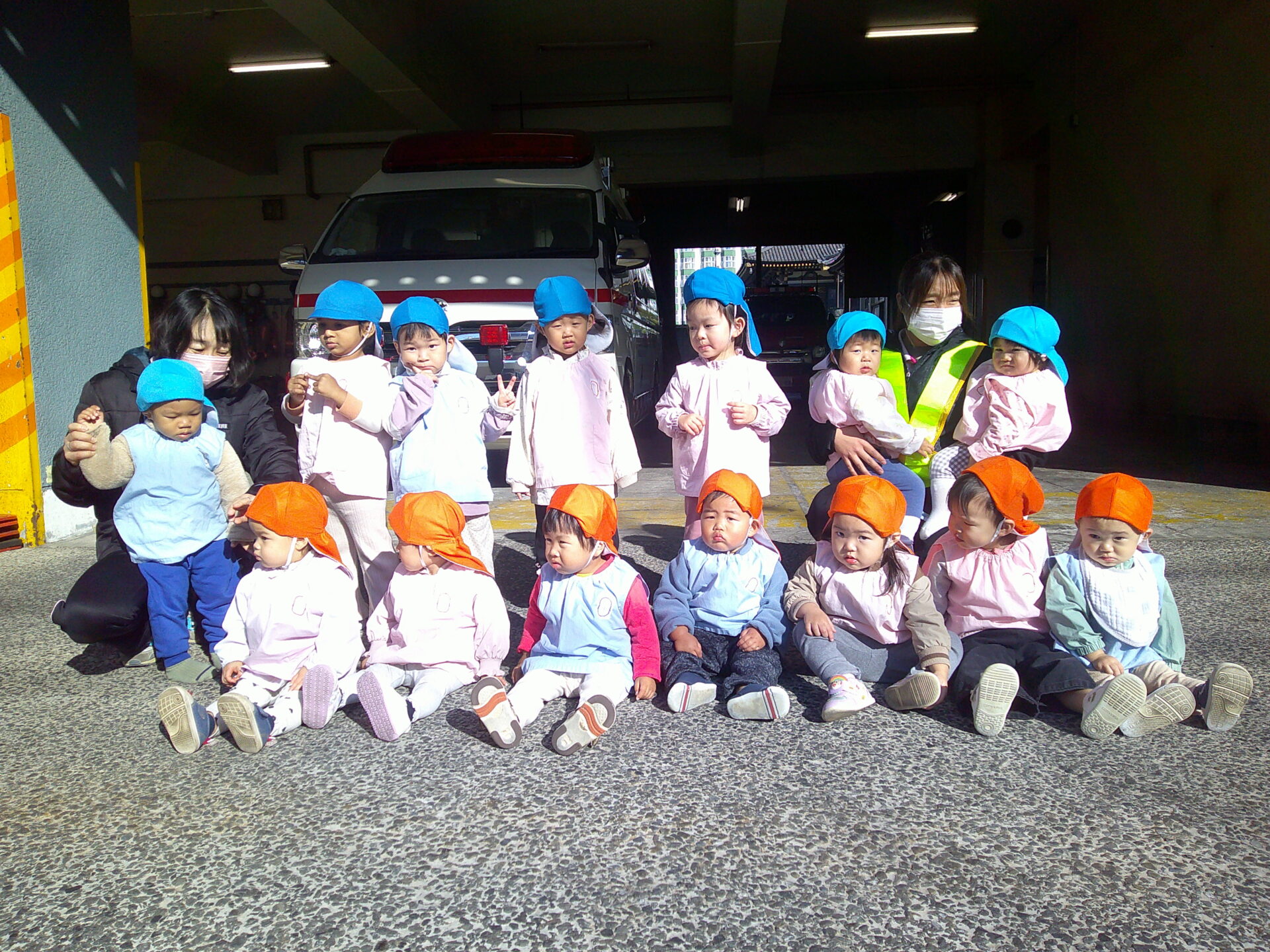 救急車がちょっと見辛いですが、みんなで記念撮影!📸✨