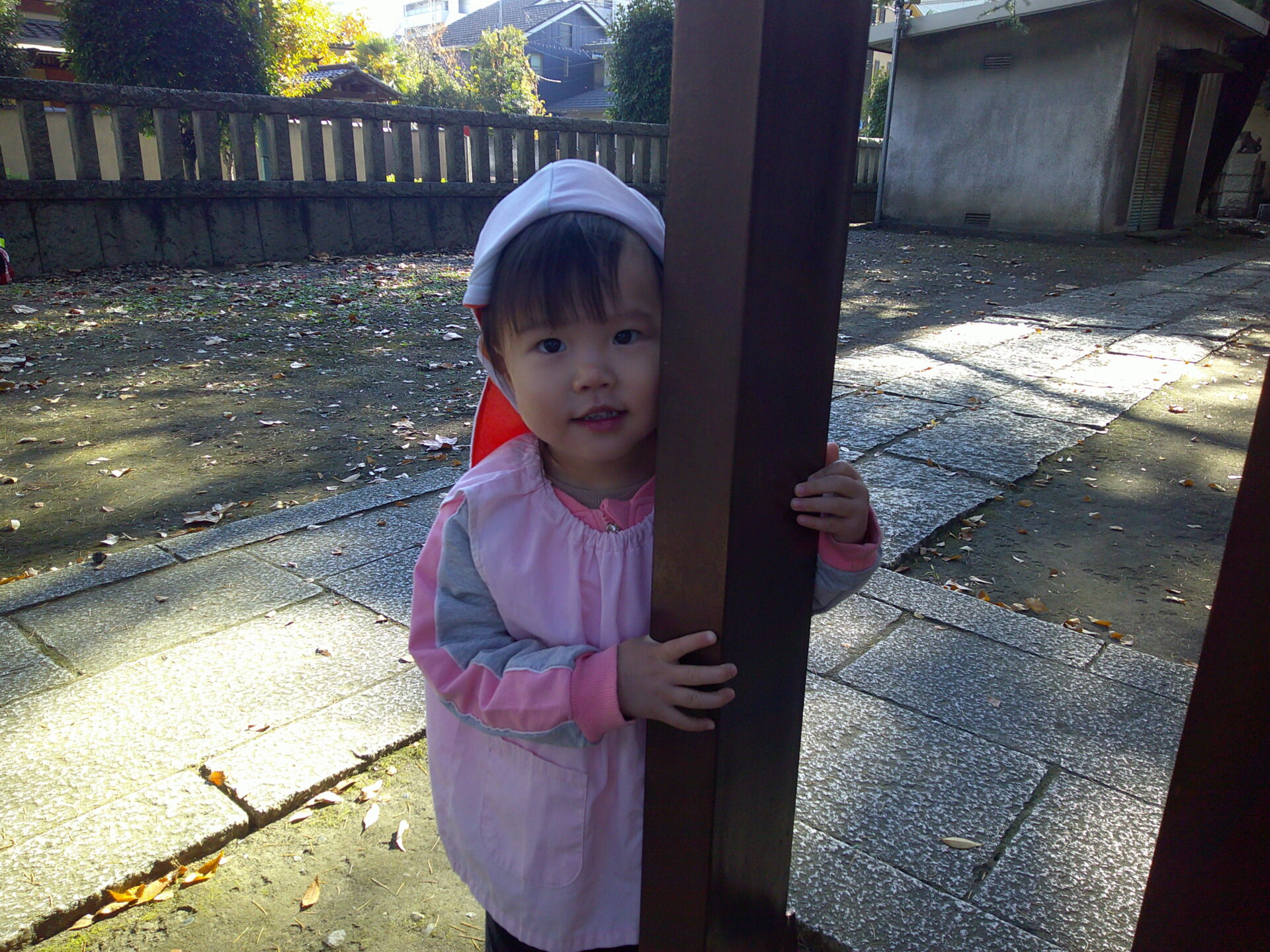 こちらでは、柱の後ろでかくれんぼ!