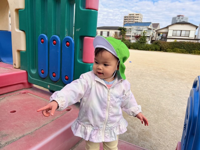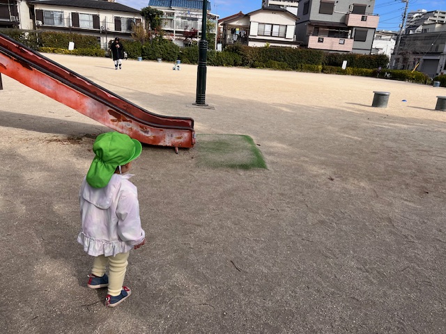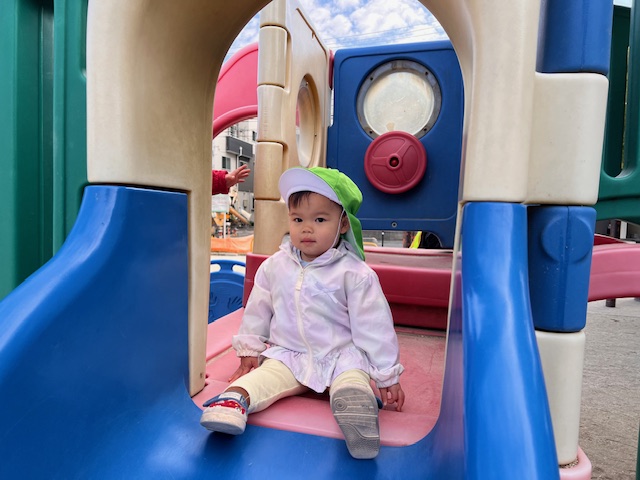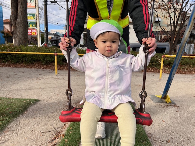 こっちのブランコは少し怖かったようで緊張の面持ちです!