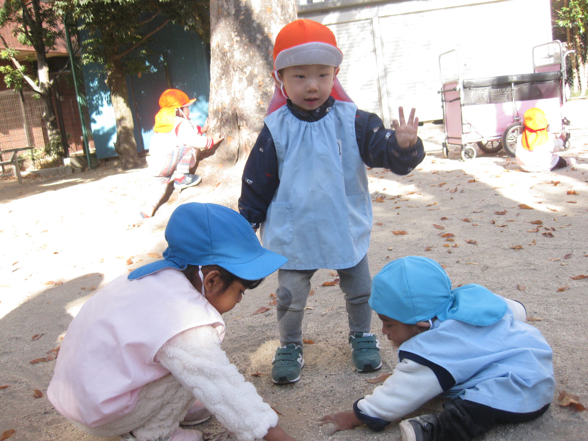お砂遊びや木の根っこに登ってみたり・・・たくさん遊びましたよ♪
