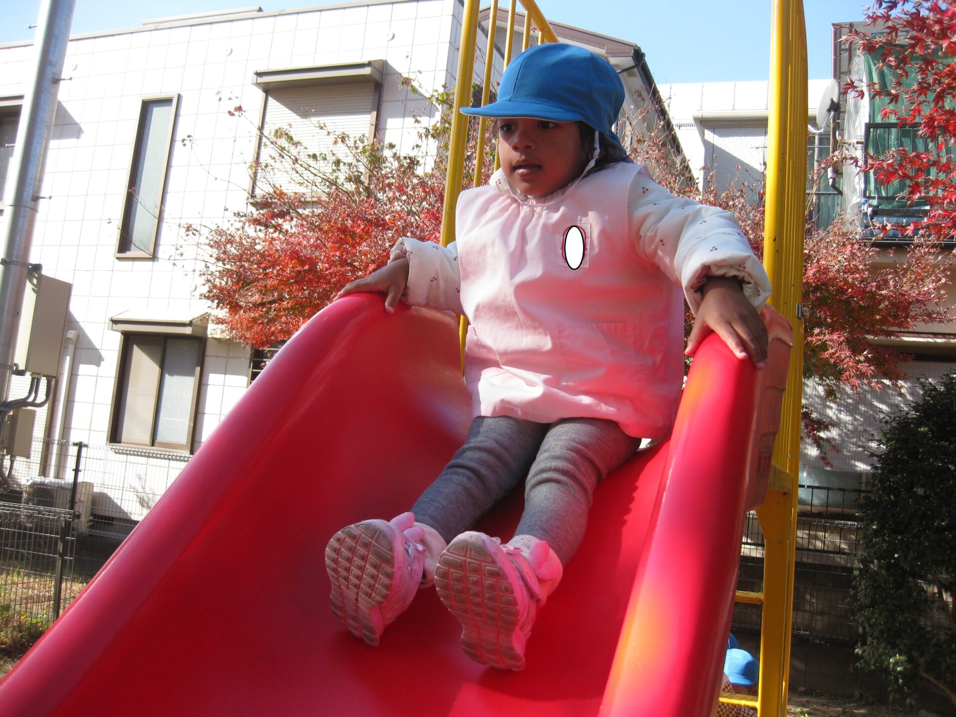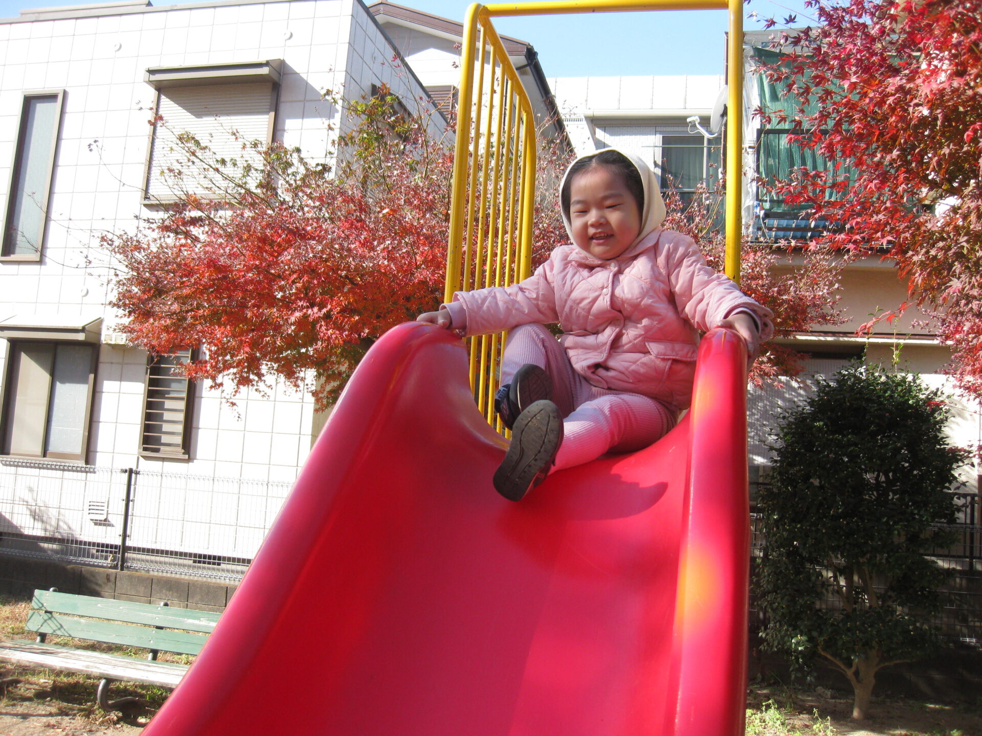 真っ先にすべり台に行き、「しゅー!」と言いながら滑っていました✨