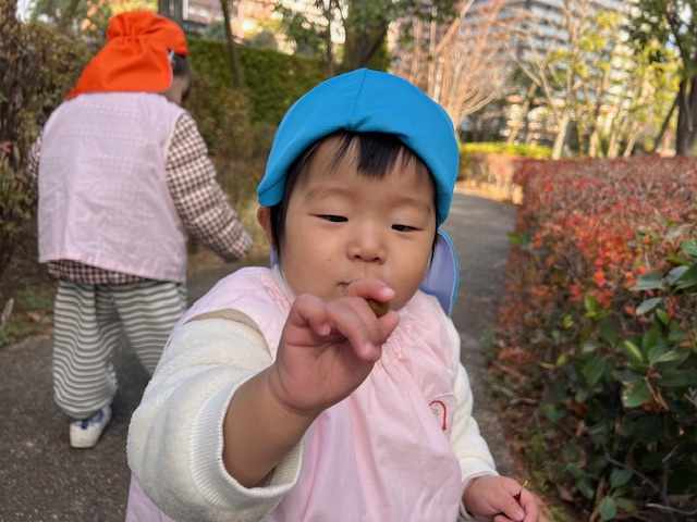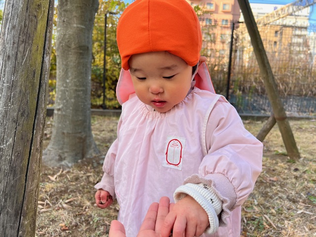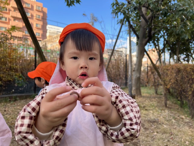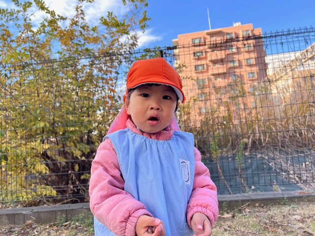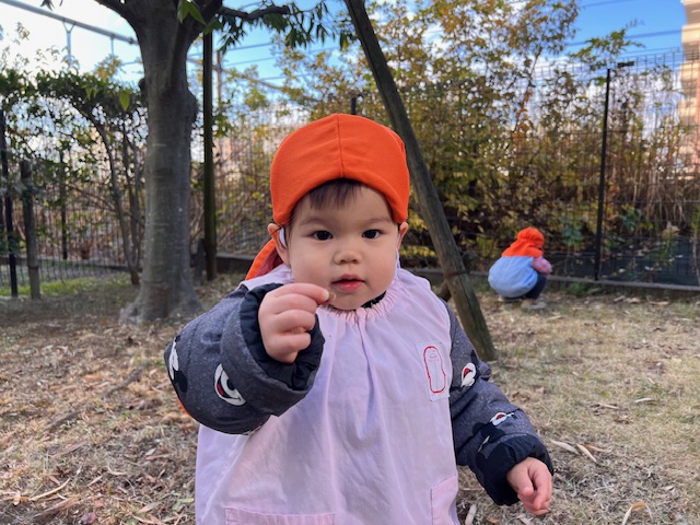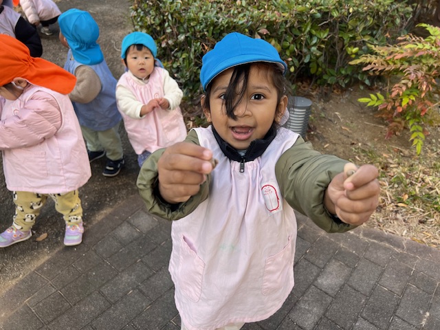どんぐりも落ちていて手の中がいっぱいになるほど集めているお友だちも😊