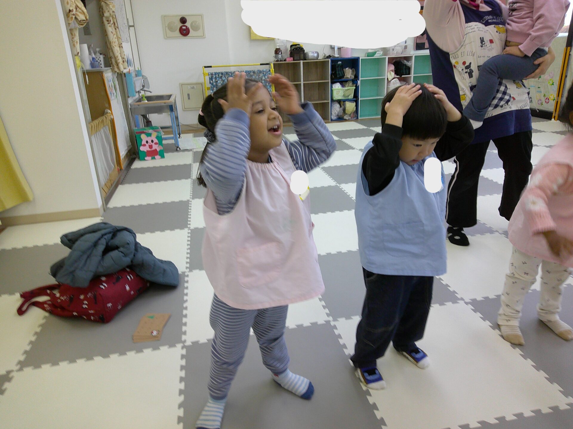 あたま、かた、ひざポンの英語バージョンもニコニコで歌ってくれました😊
