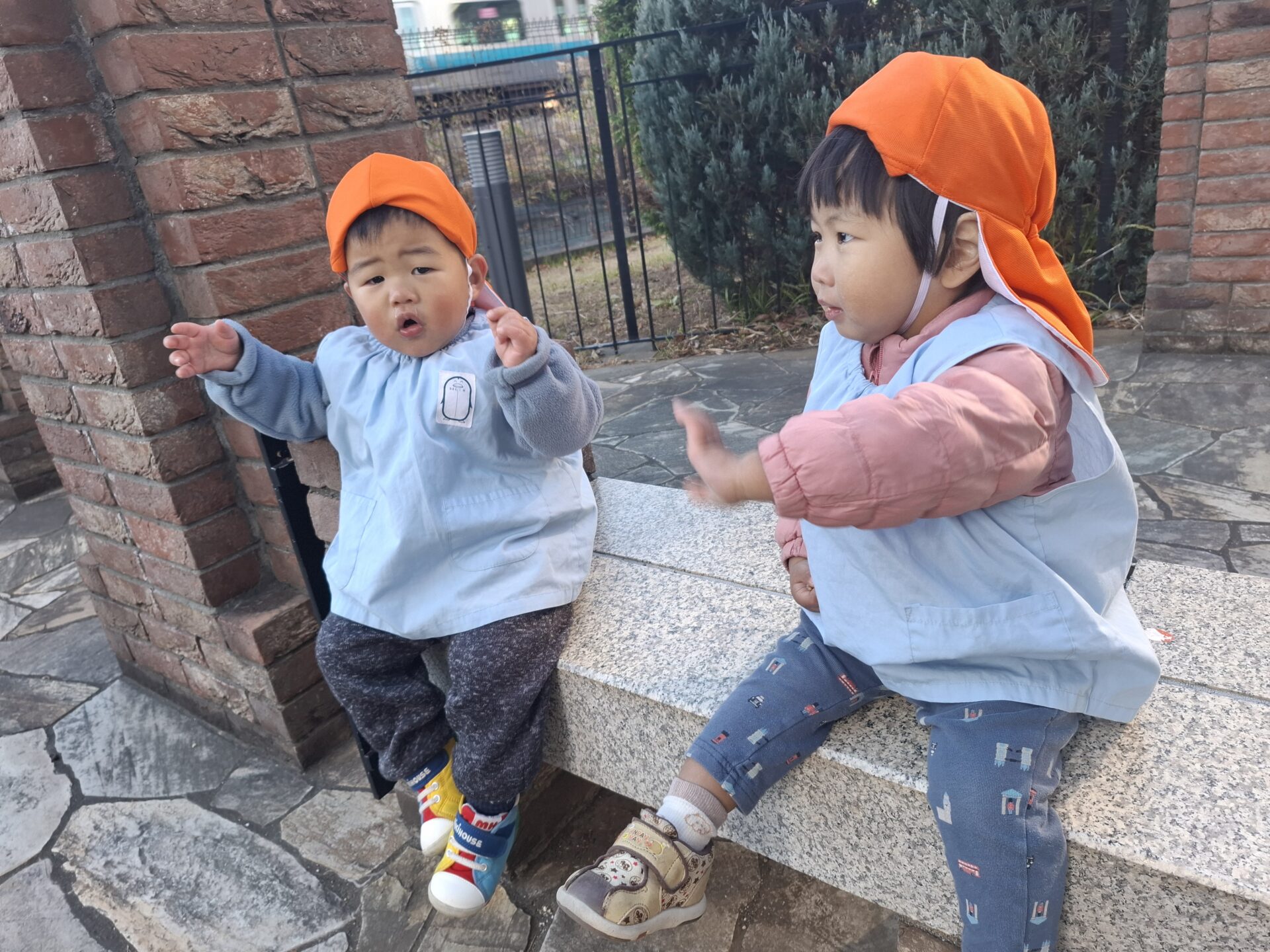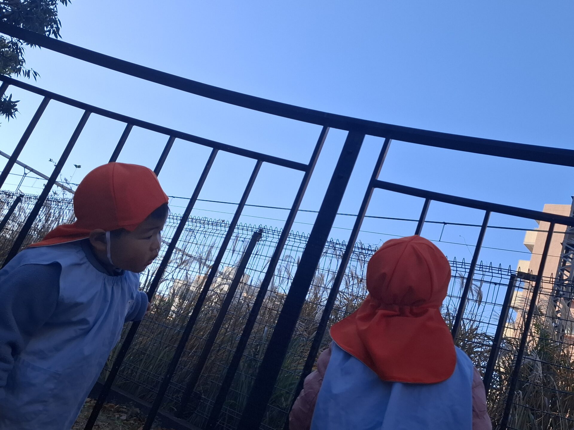 電車を見つけたようで、お友だちと一緒にみんなで手を振っていました👋