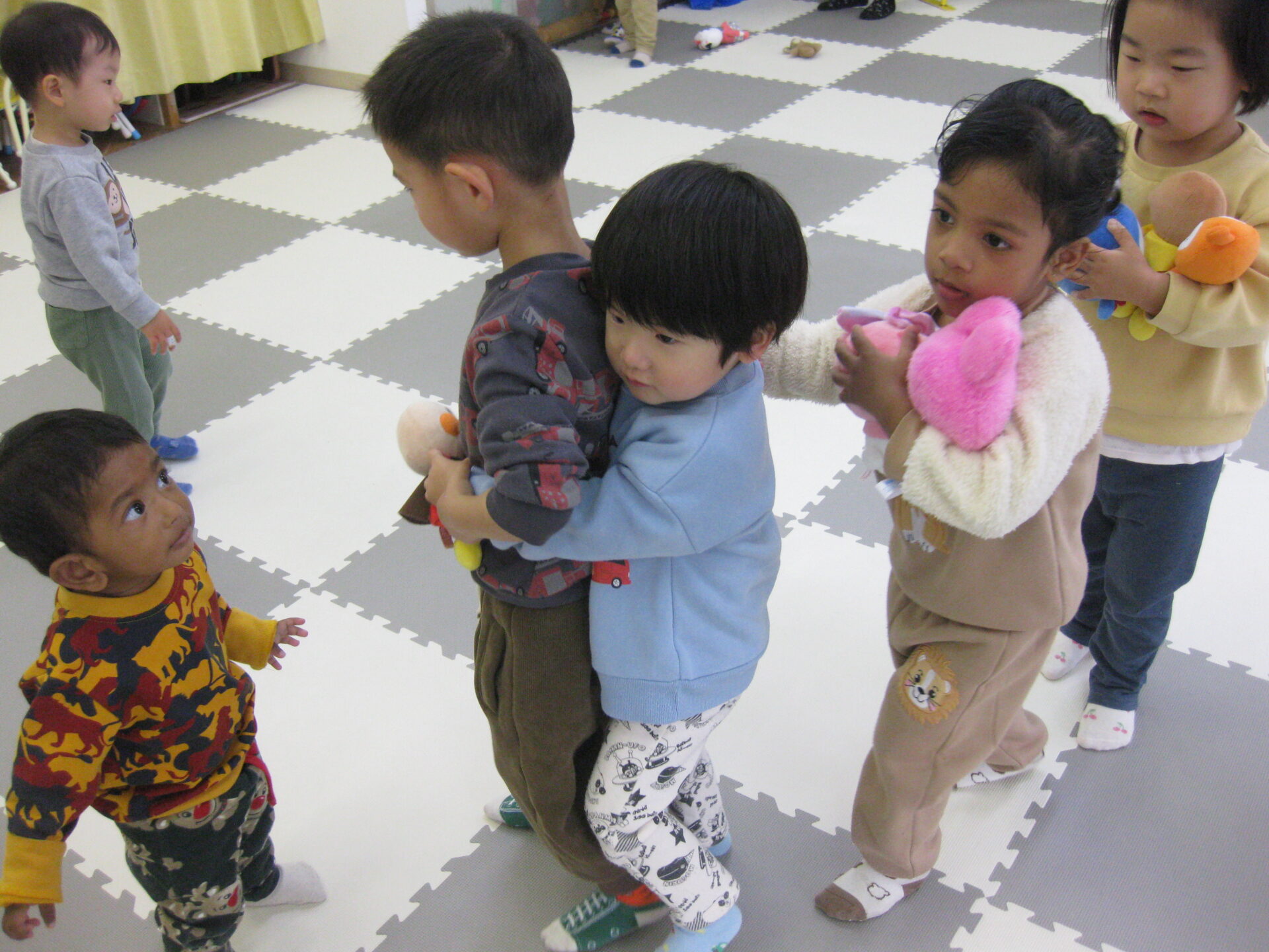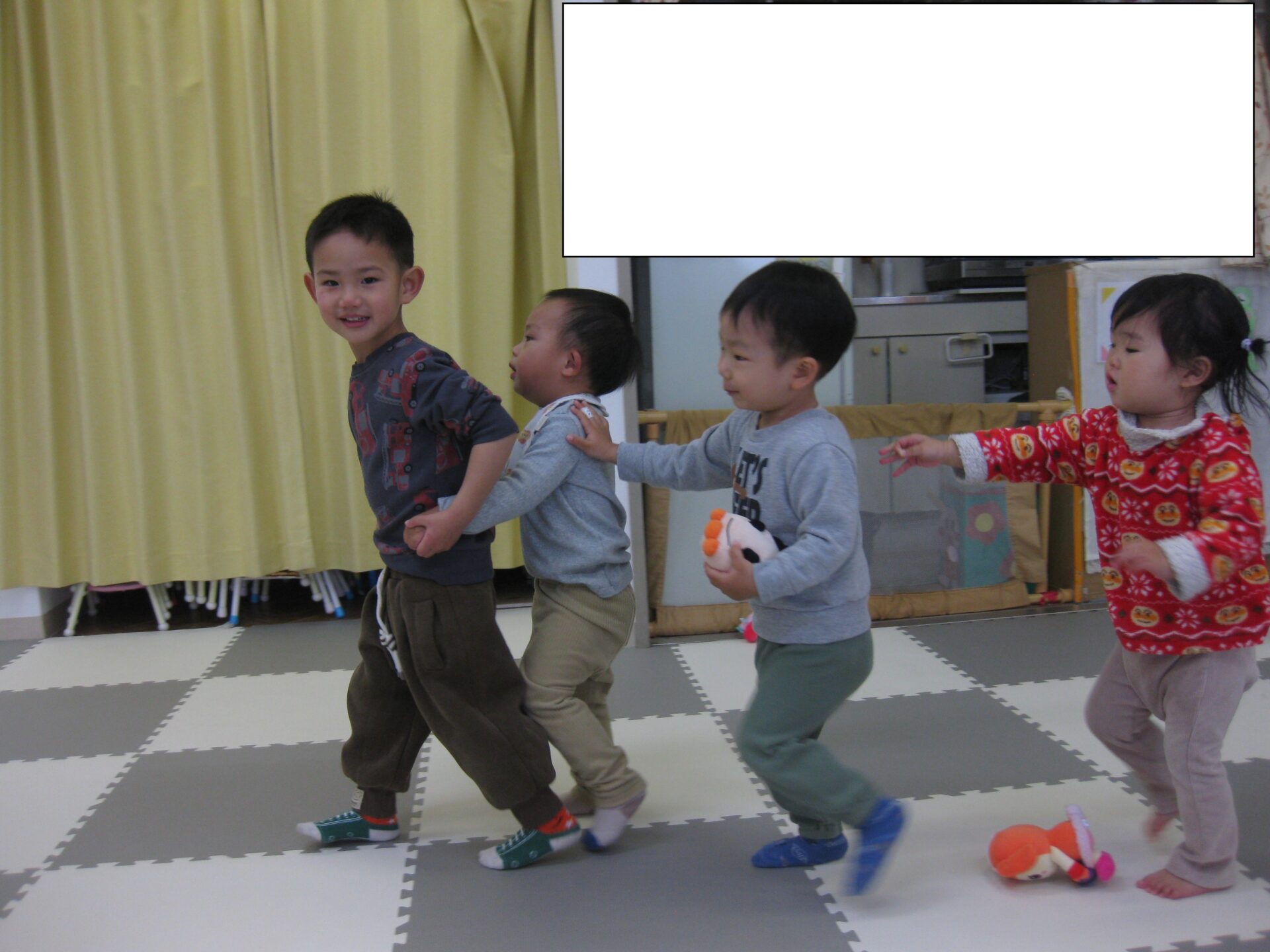 まずは朝の様子です♬可愛く電車ごっこをしています💕