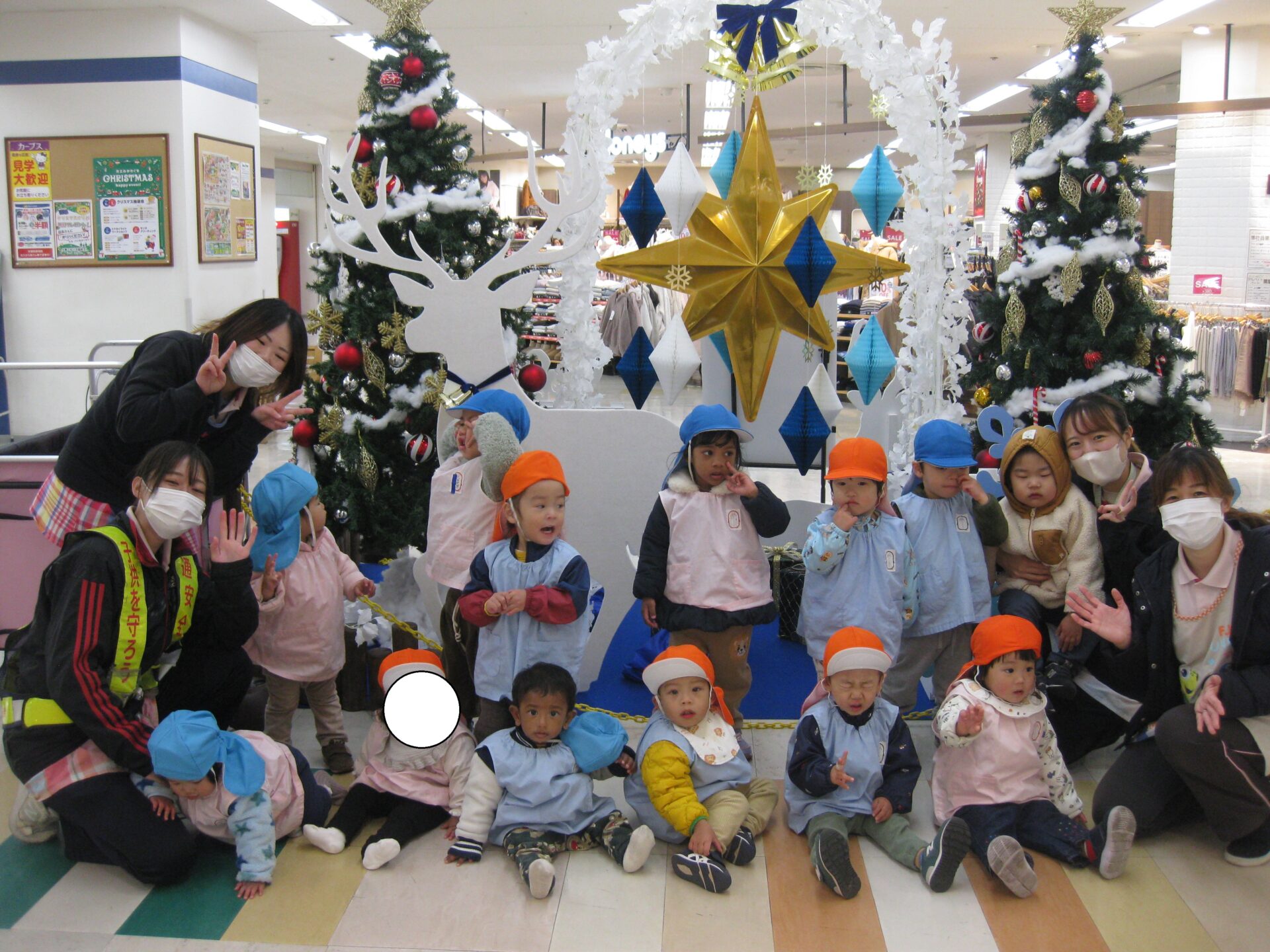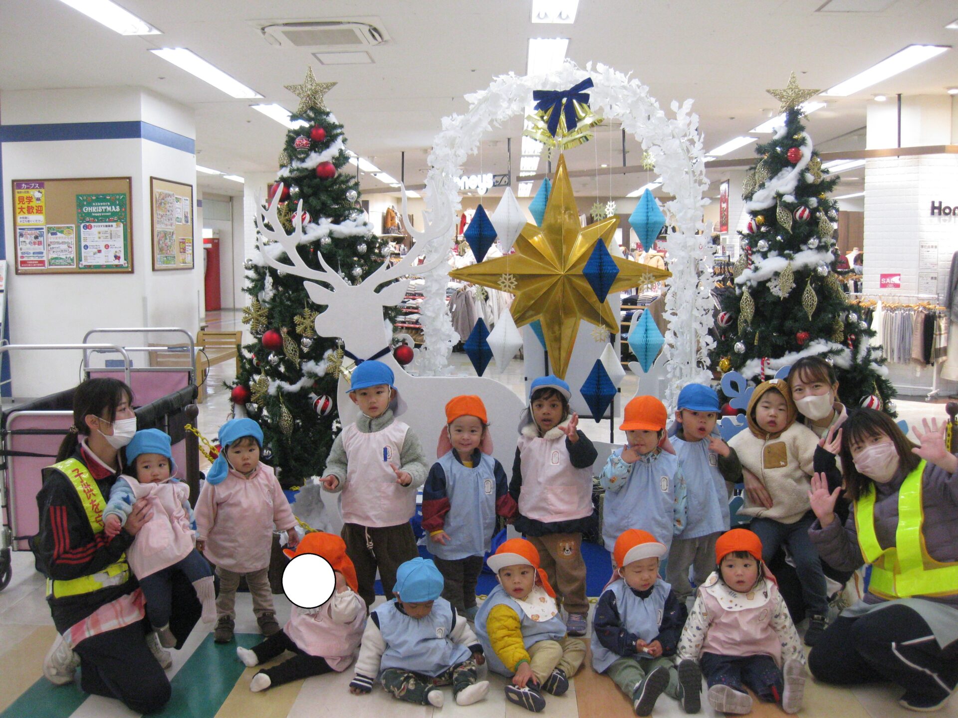 可愛いいツリー🎄の前でみんなで記念撮影をしましたよ🎵