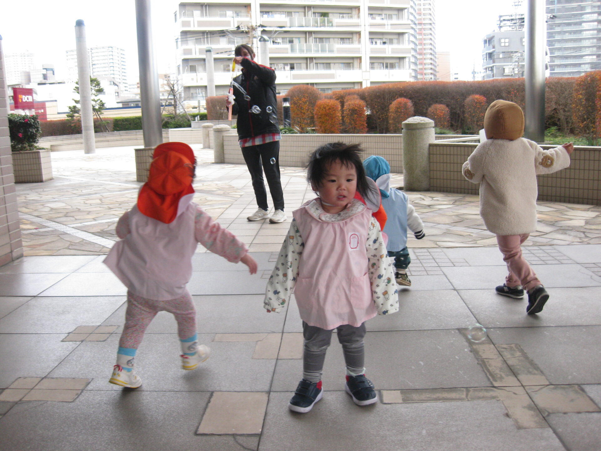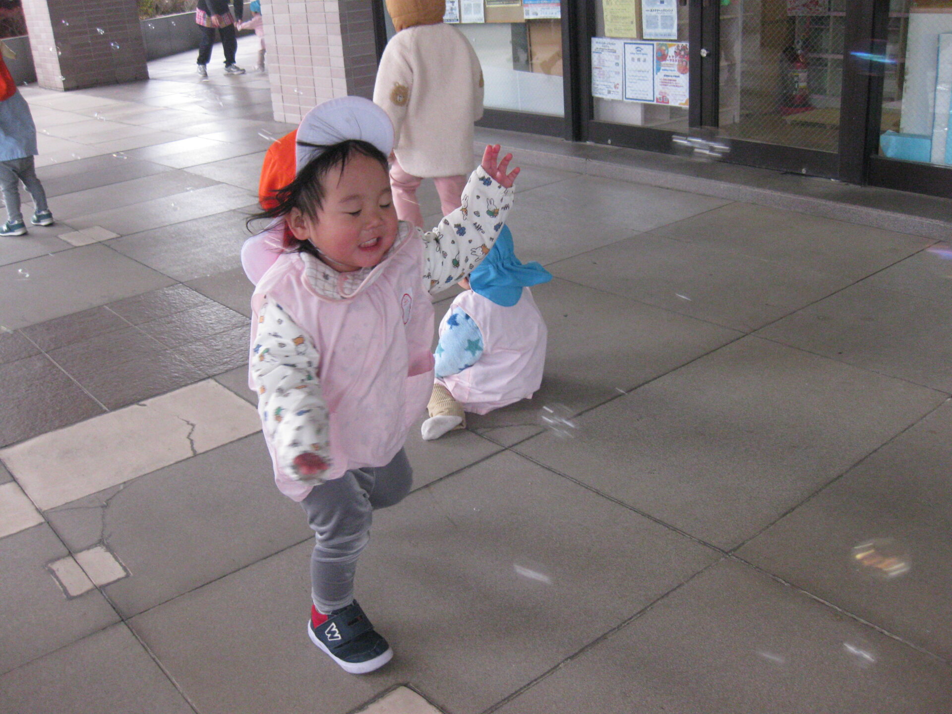 風に乗って勢いよくシャボン玉が飛んでいくので大興奮‼