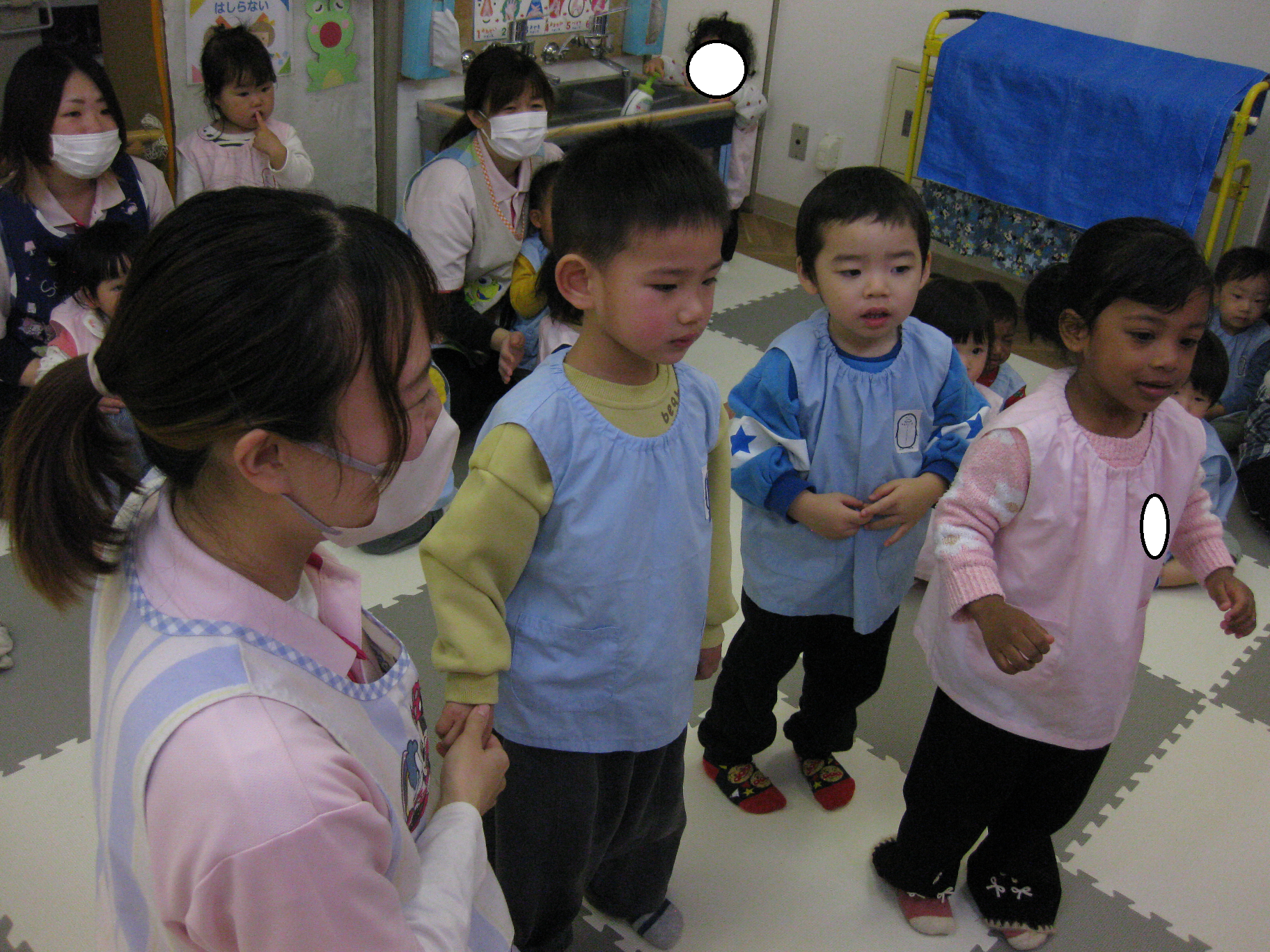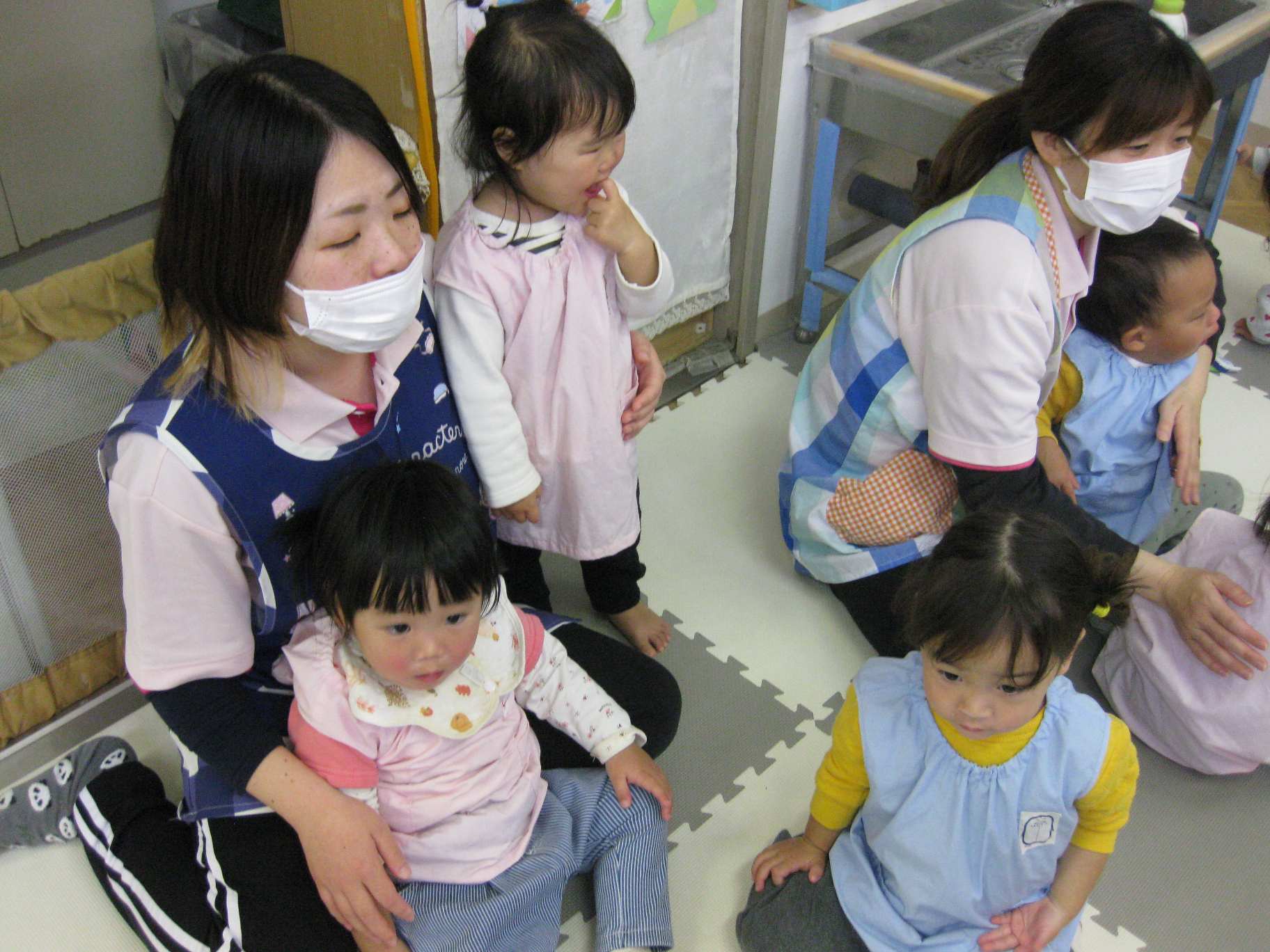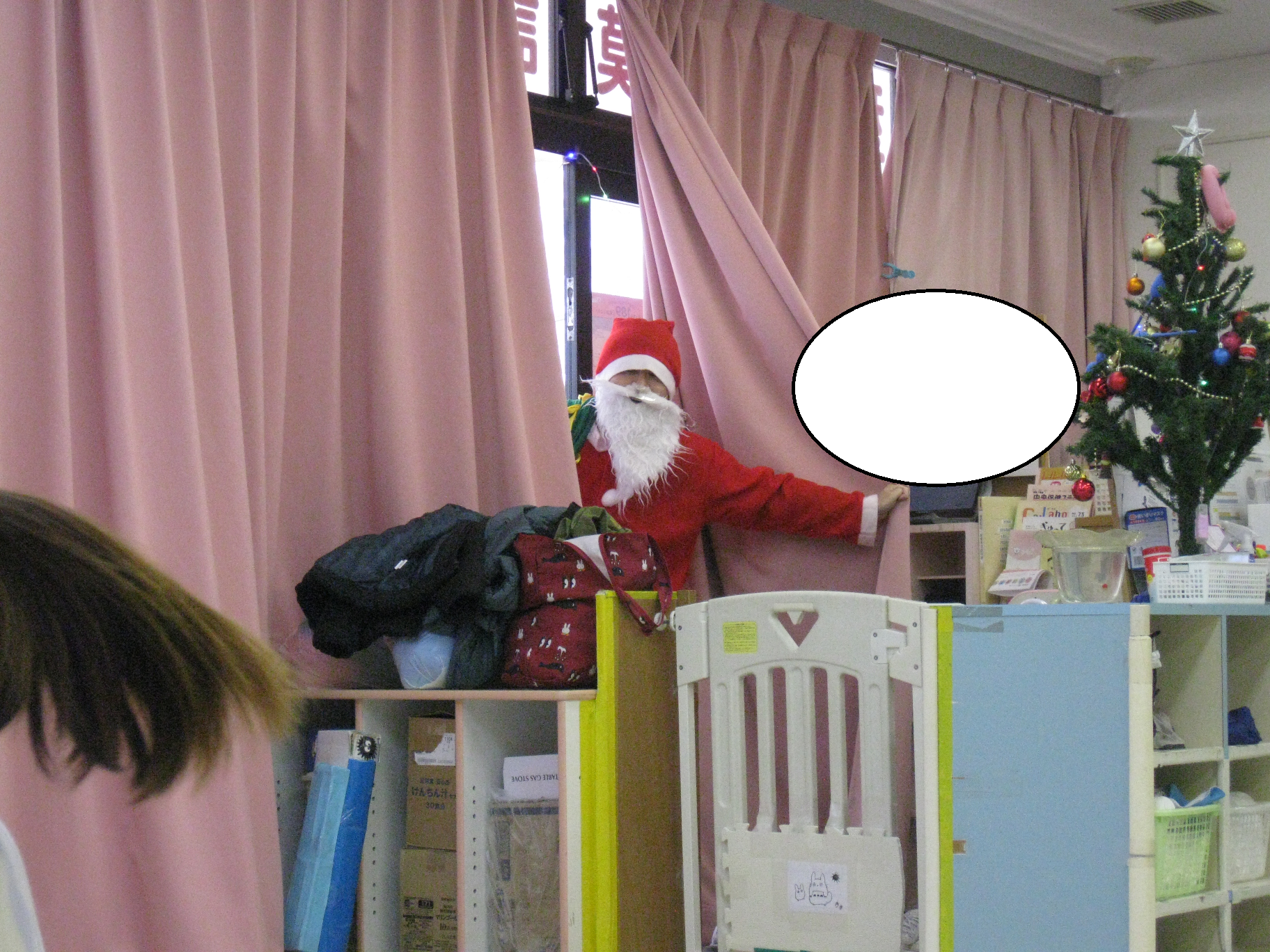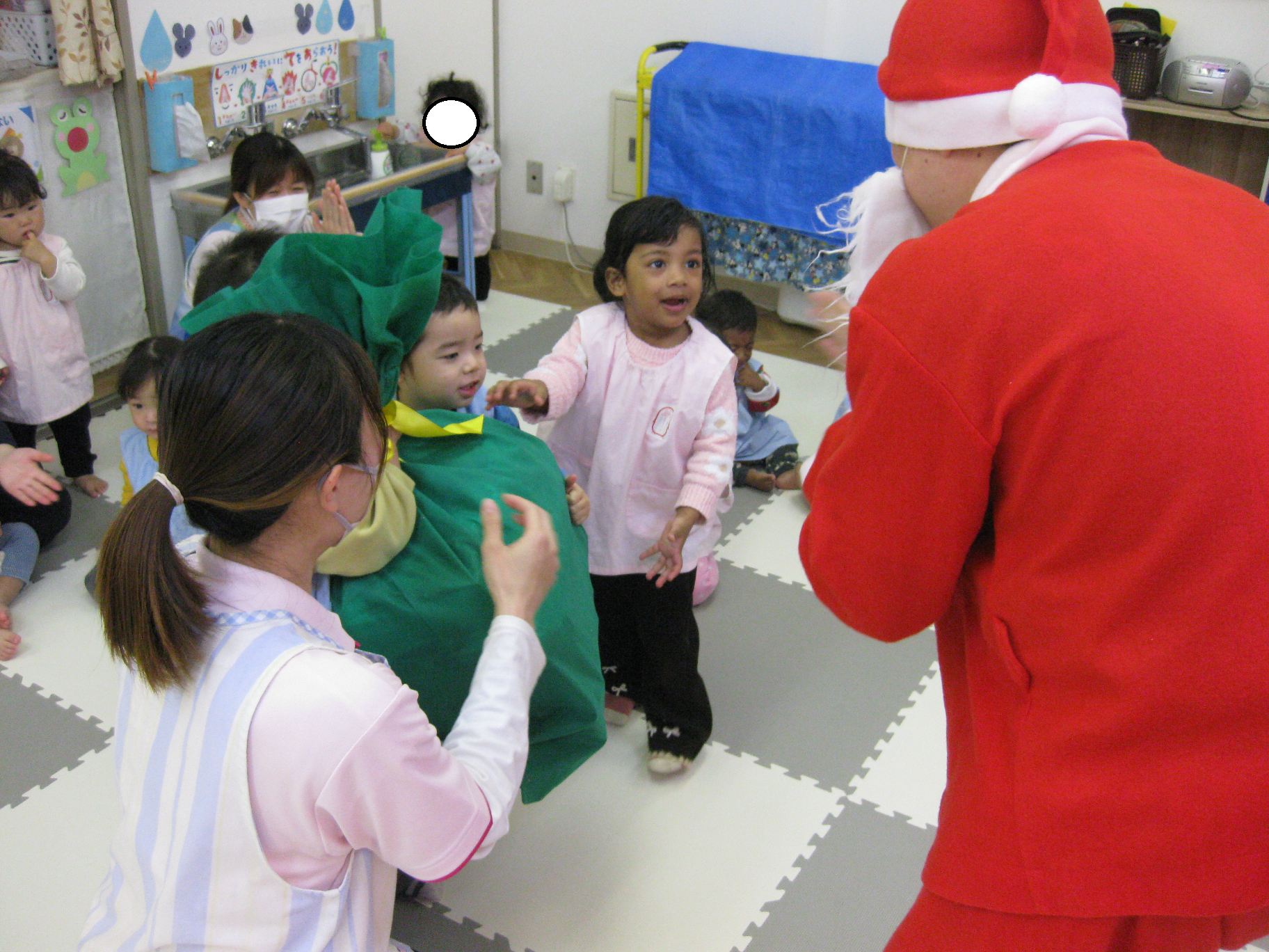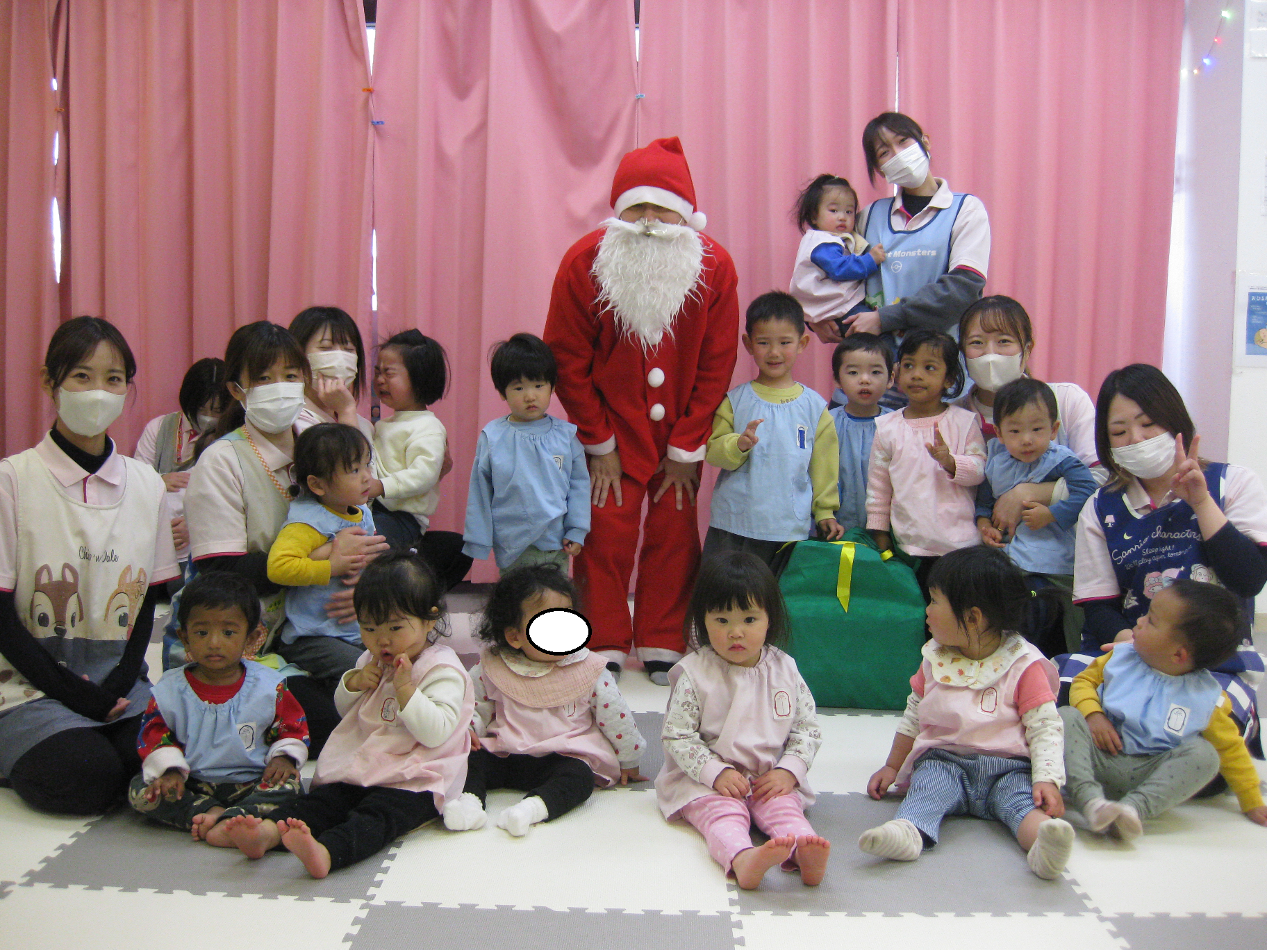 クリスマス会では、サンタクロースの登場にビックリして泣いてしまうお友達や嬉しそうに手を振っているお友達など様々な姿が見られました✨