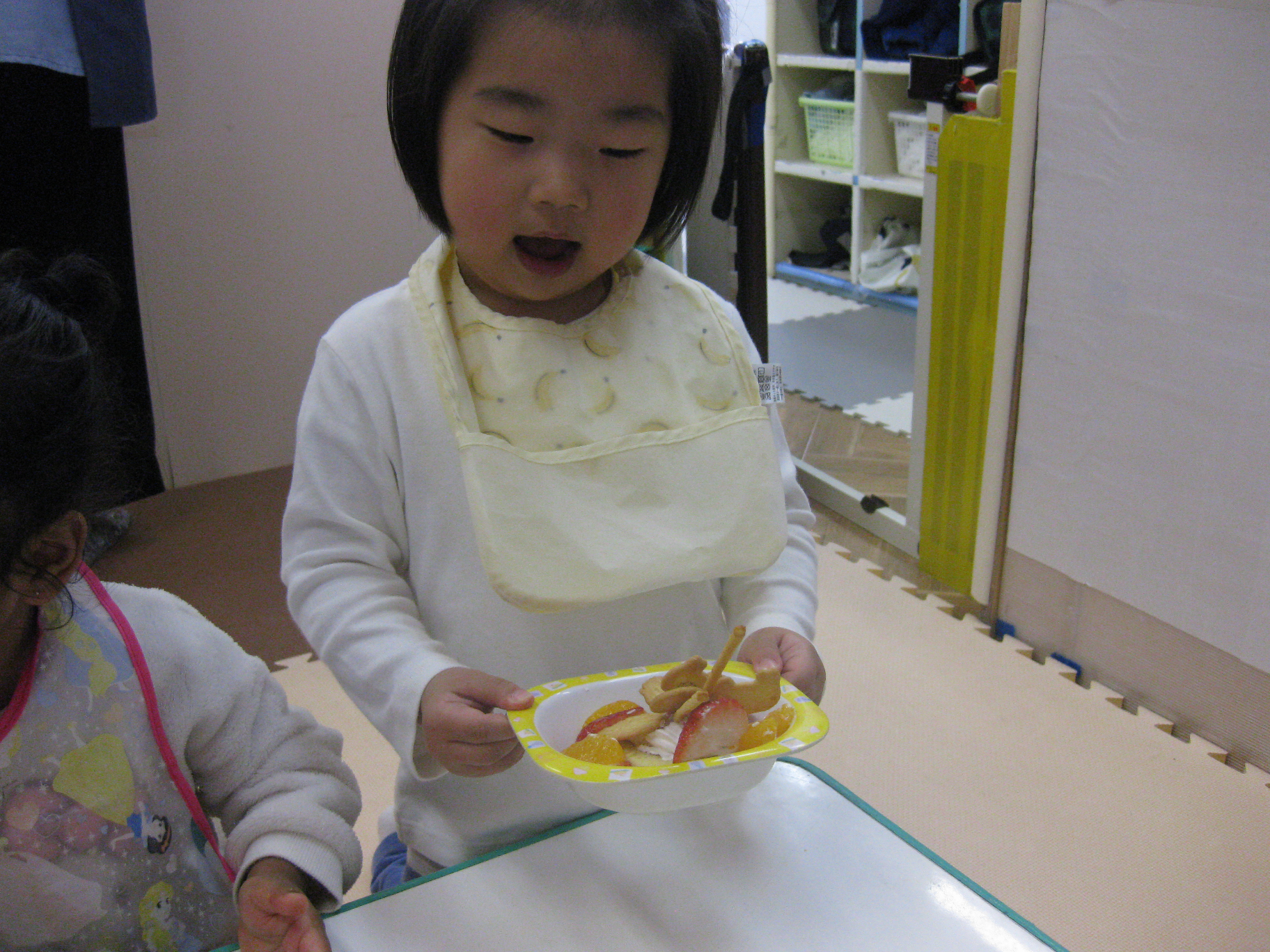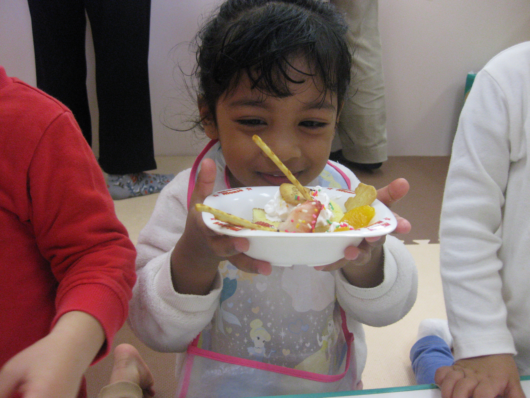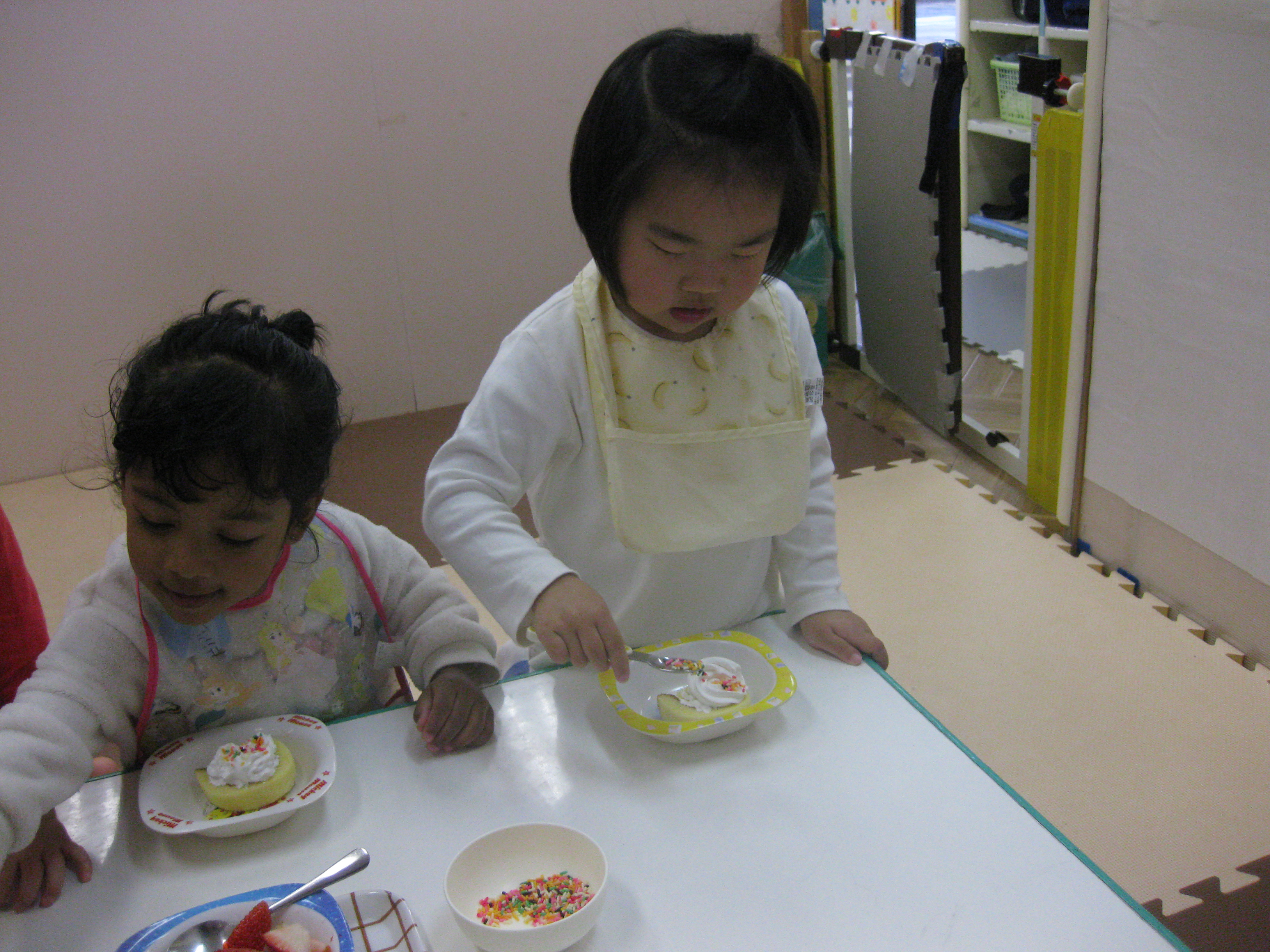 こあら組のお友達は自分たちでクリームを絞ったり、チョコスプレーやフルーツをトッピングしました😊