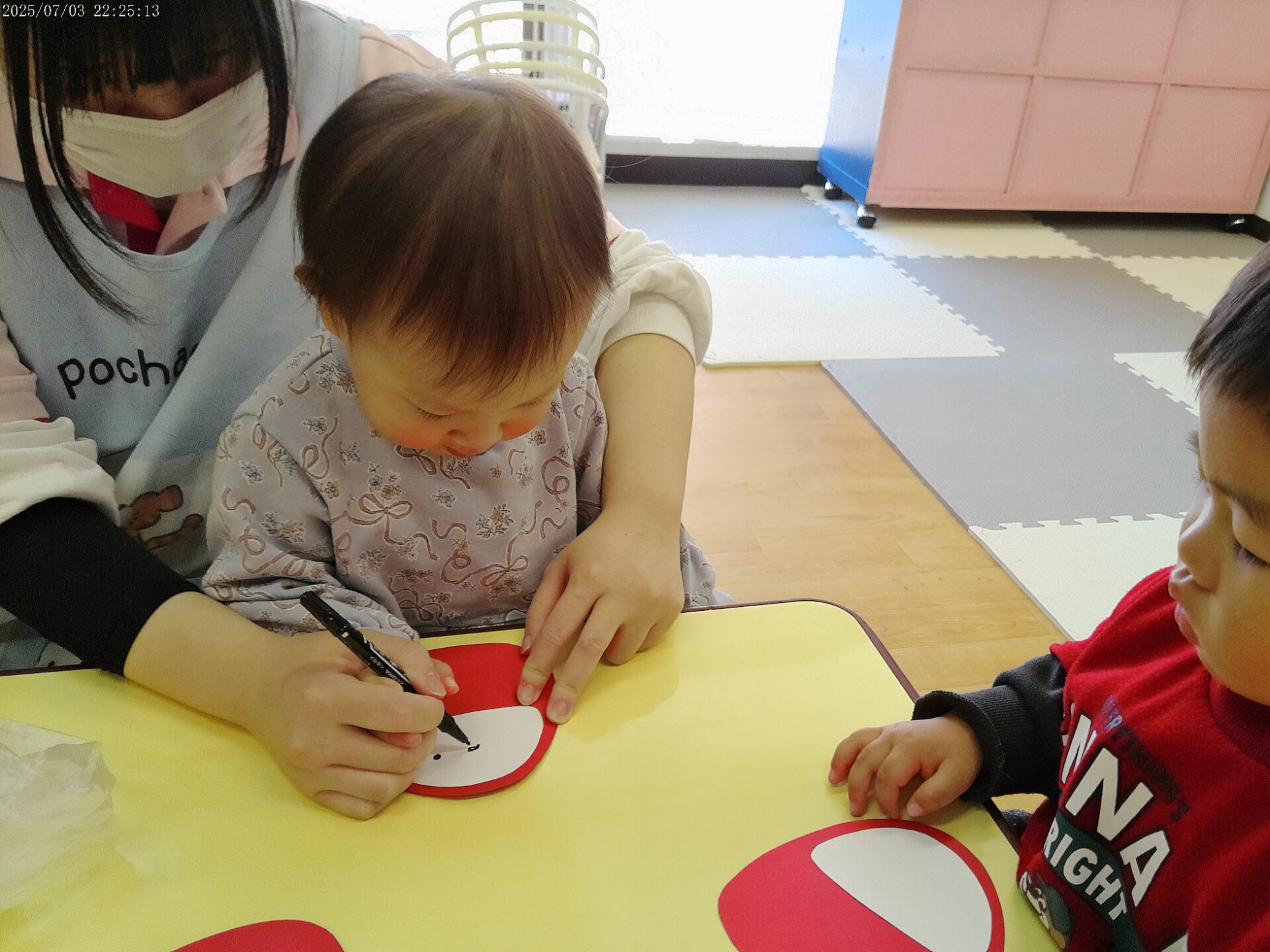 上手におめめを描くと、嬉しそうに先生の顔を見てにこ~っと笑ってくれました🥰