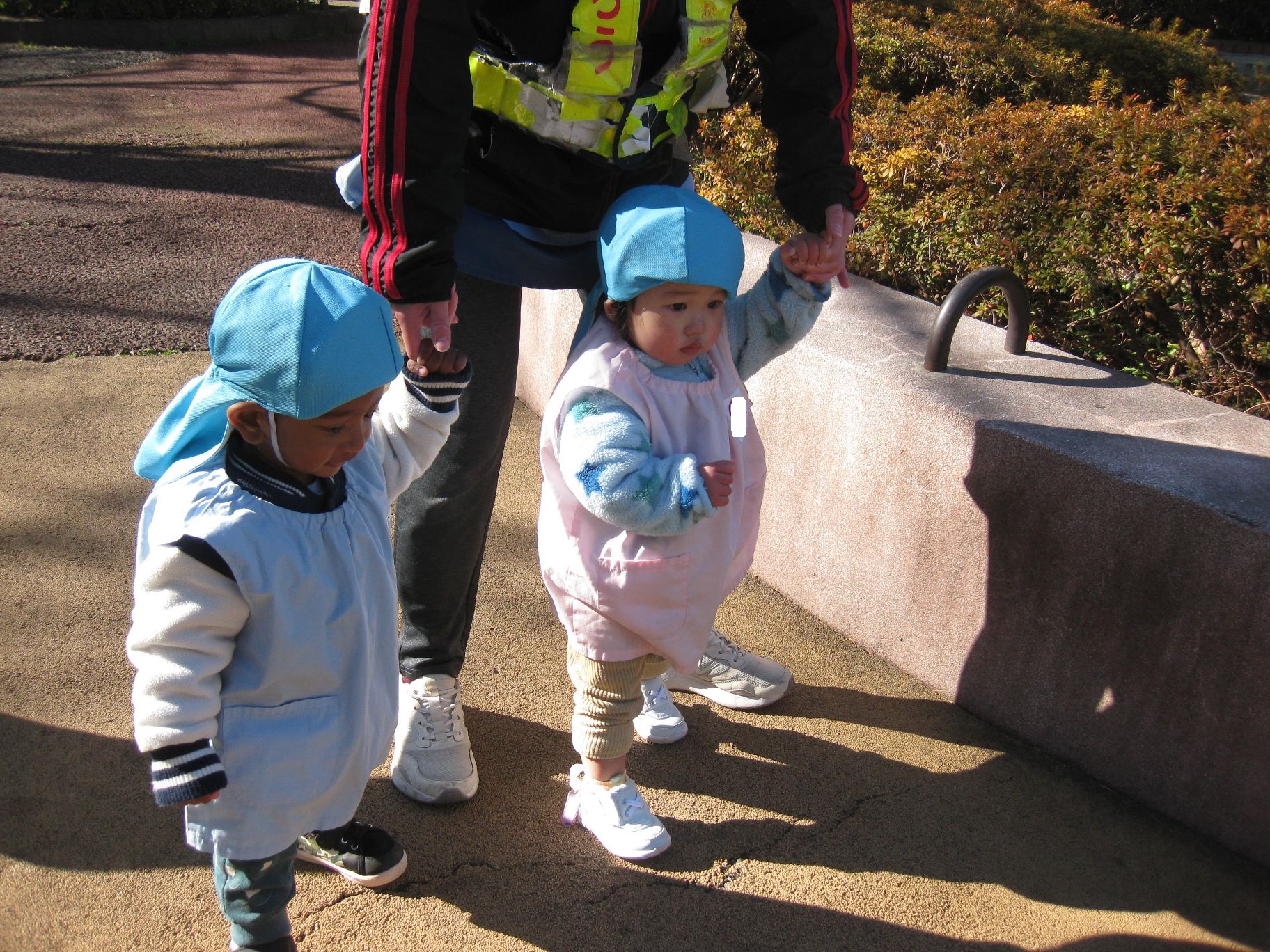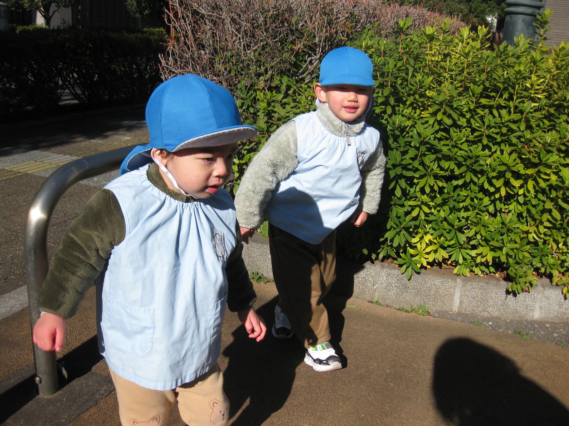 ひよこ組さんの小さなお友達は2人仲良く歩く練習です😊