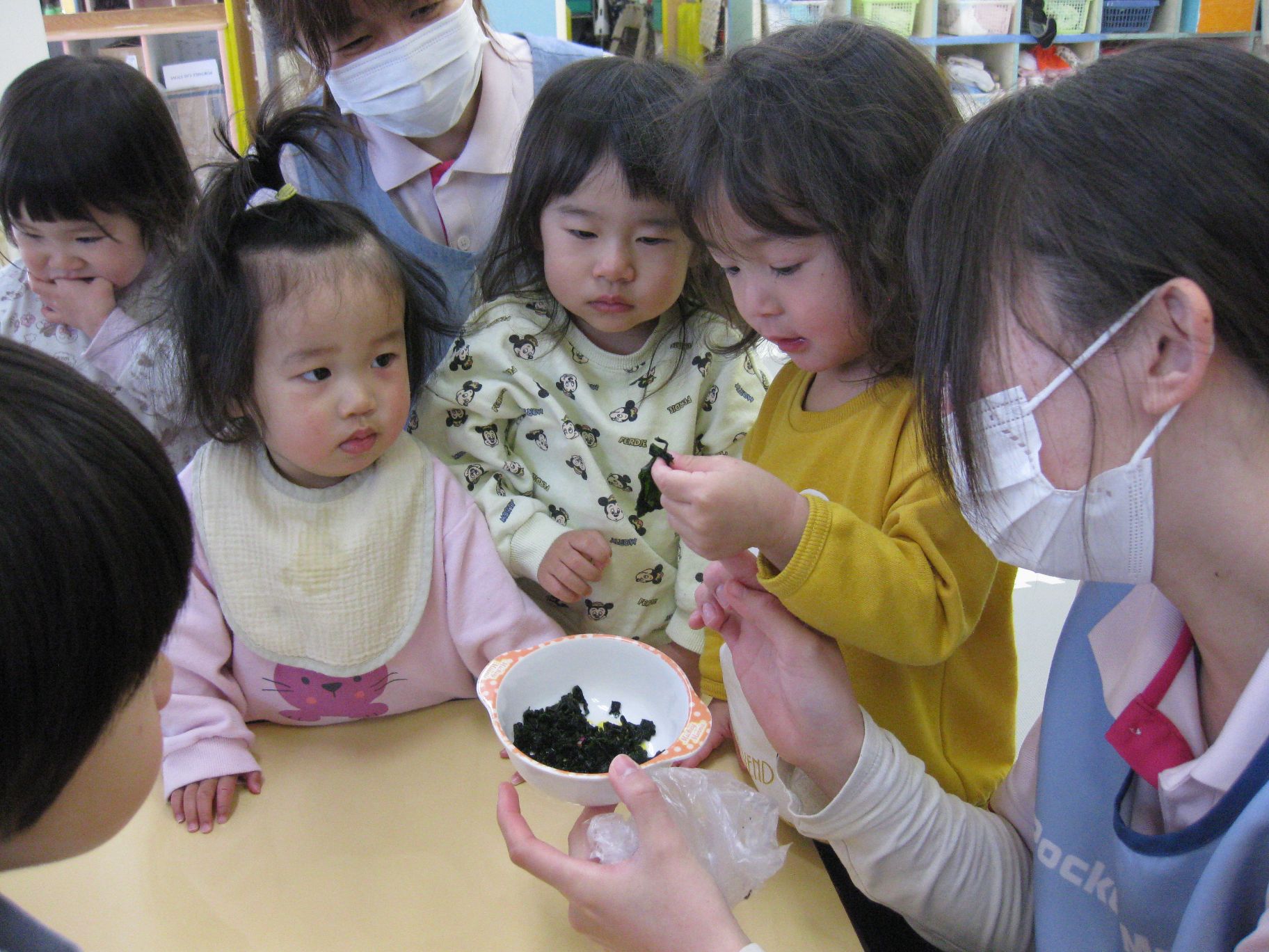 お給食のお味噌汁に戻したワカメが入ってるよ~とお話しすると、みんなたくさん食べてくれました😋