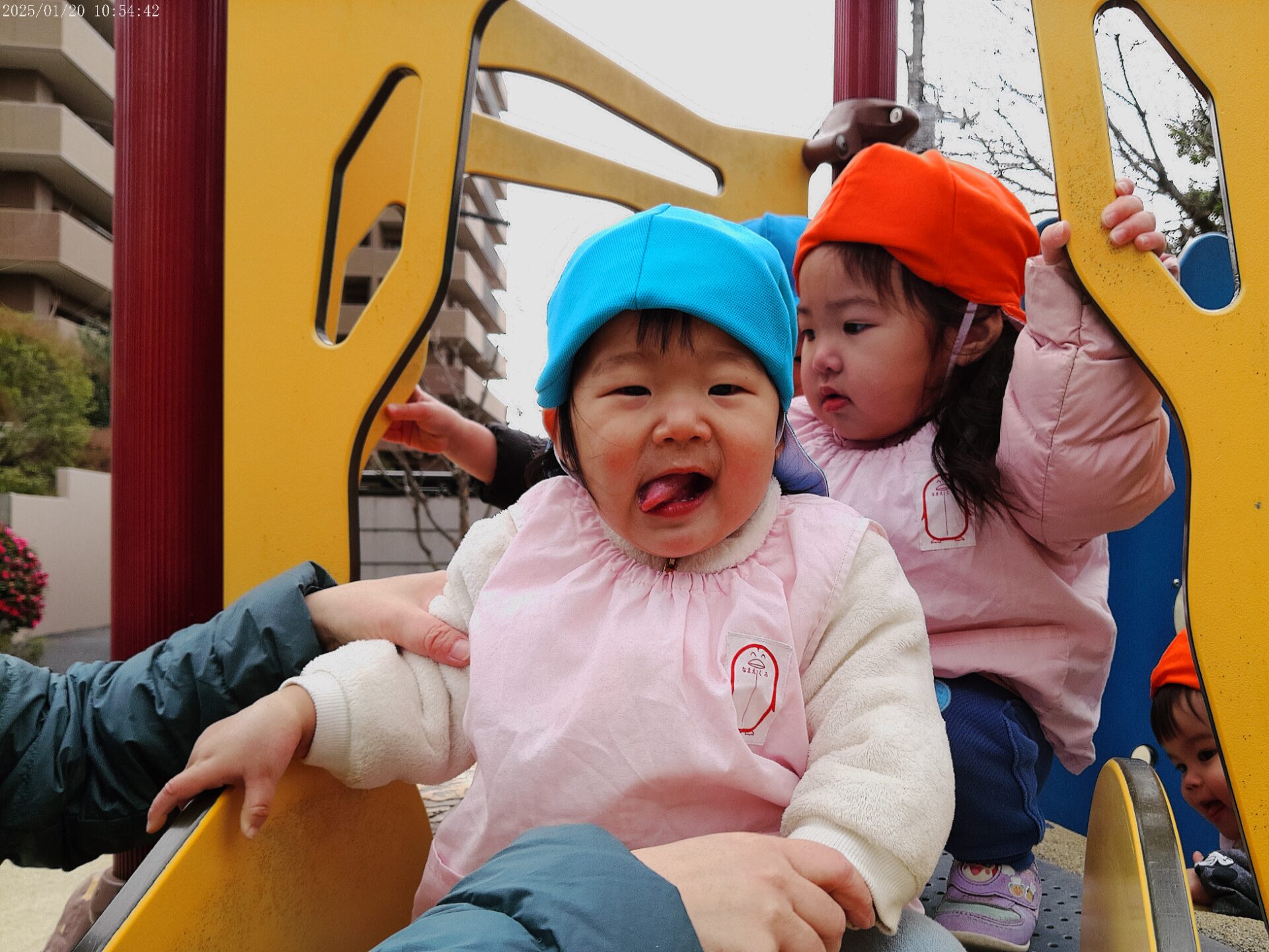 公園では大好きな滑り台を滑ったり、かけっこをしたり・・・