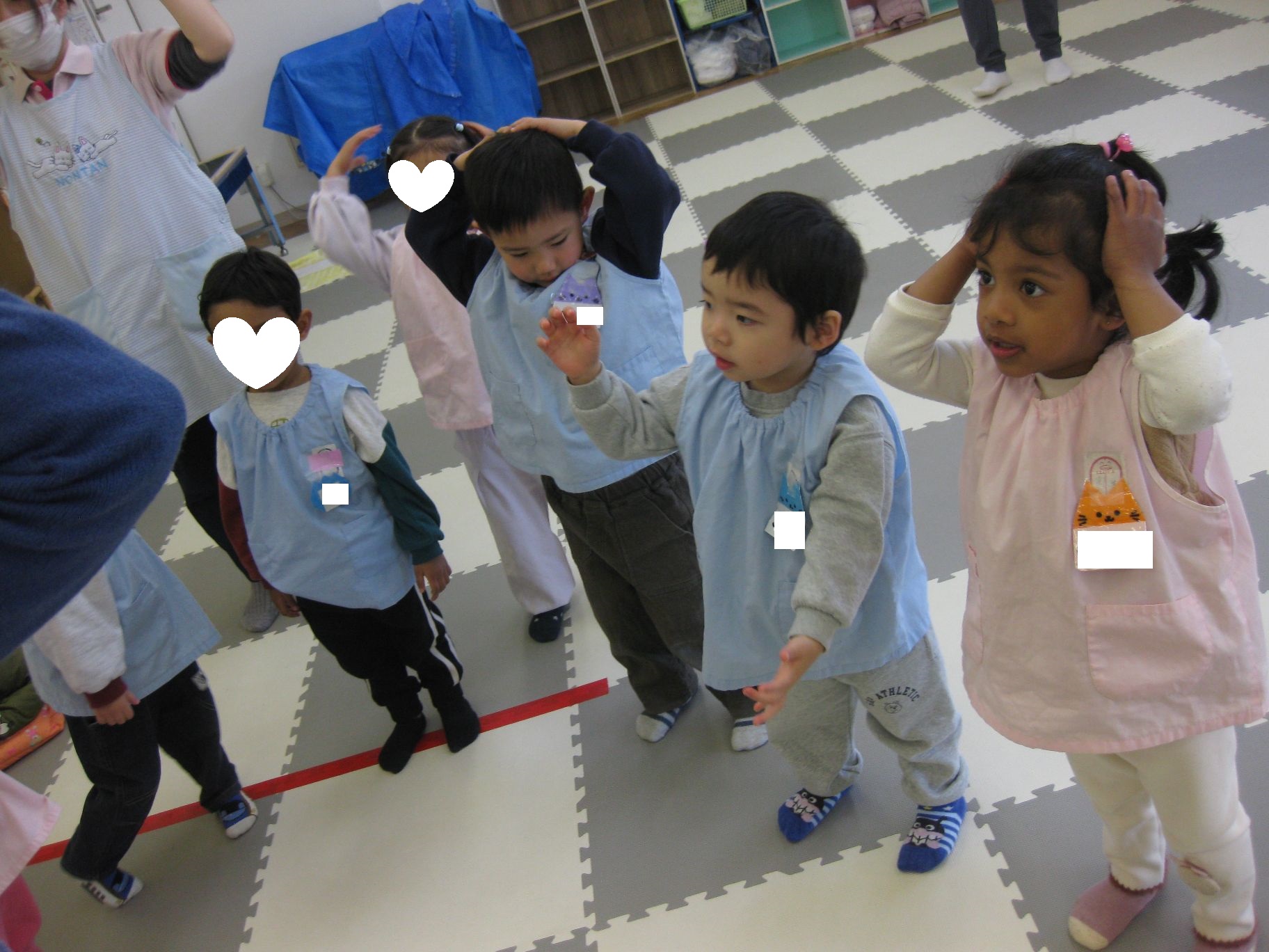 「あたま・かた・ひざ・ポン」のお歌を英語バージョンで歌って楽しみました🎵