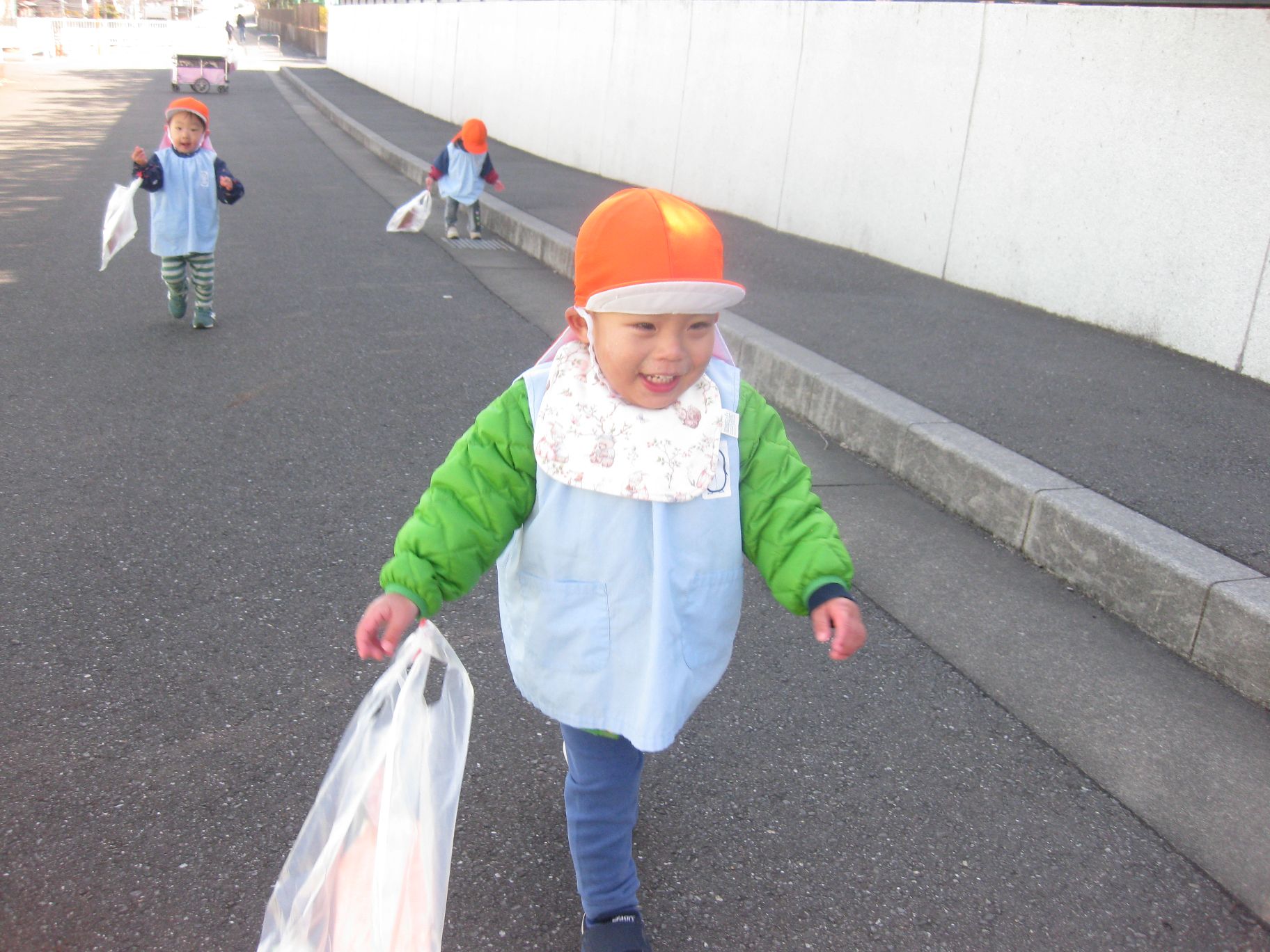 先日お製作をした凧を使って、みんなで凧あげを楽しみました♪