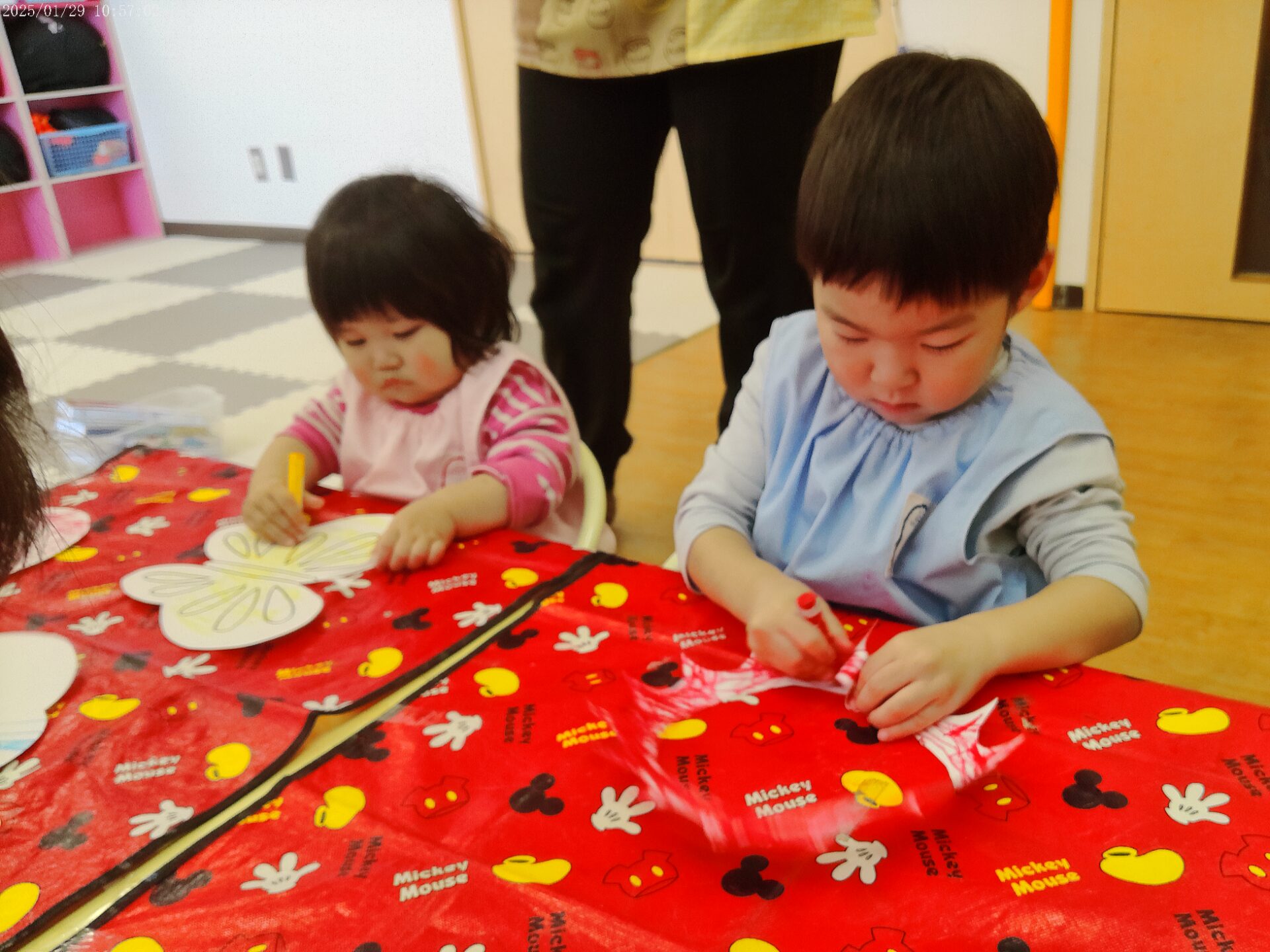 子ども達は、自分の役の色をちゃんと覚えていて、頑張って上手に一生懸命塗っていました✨