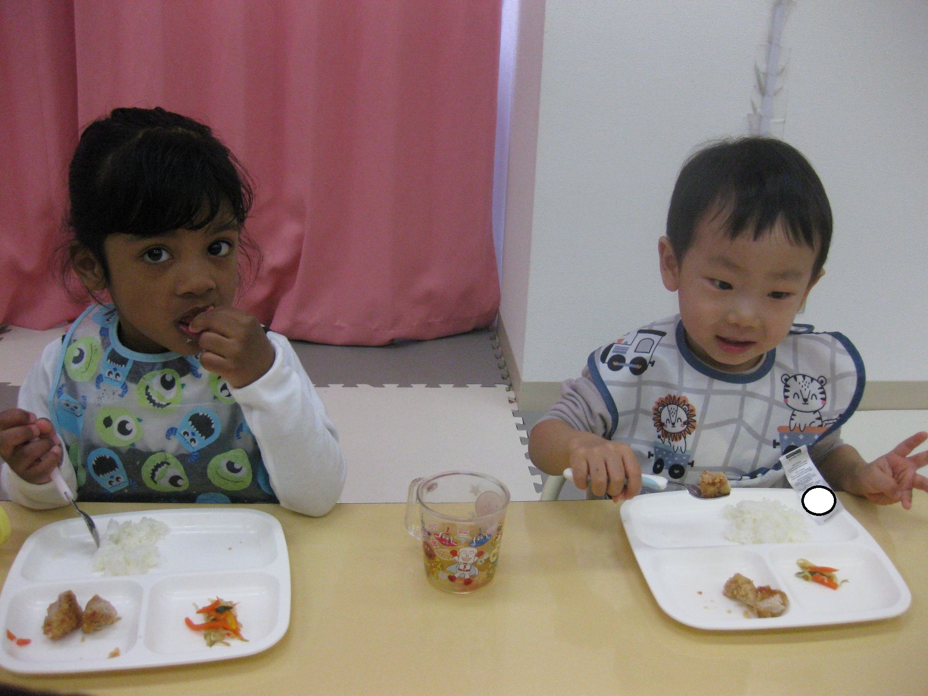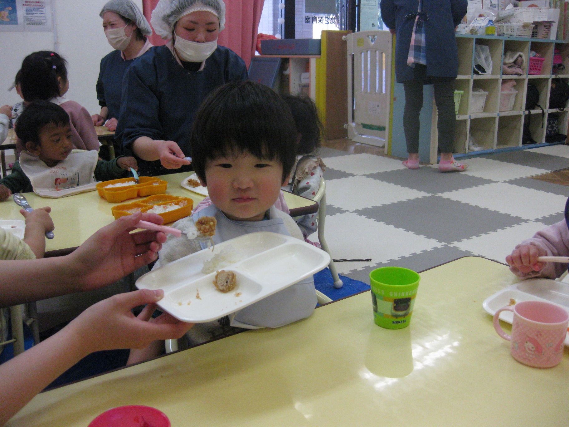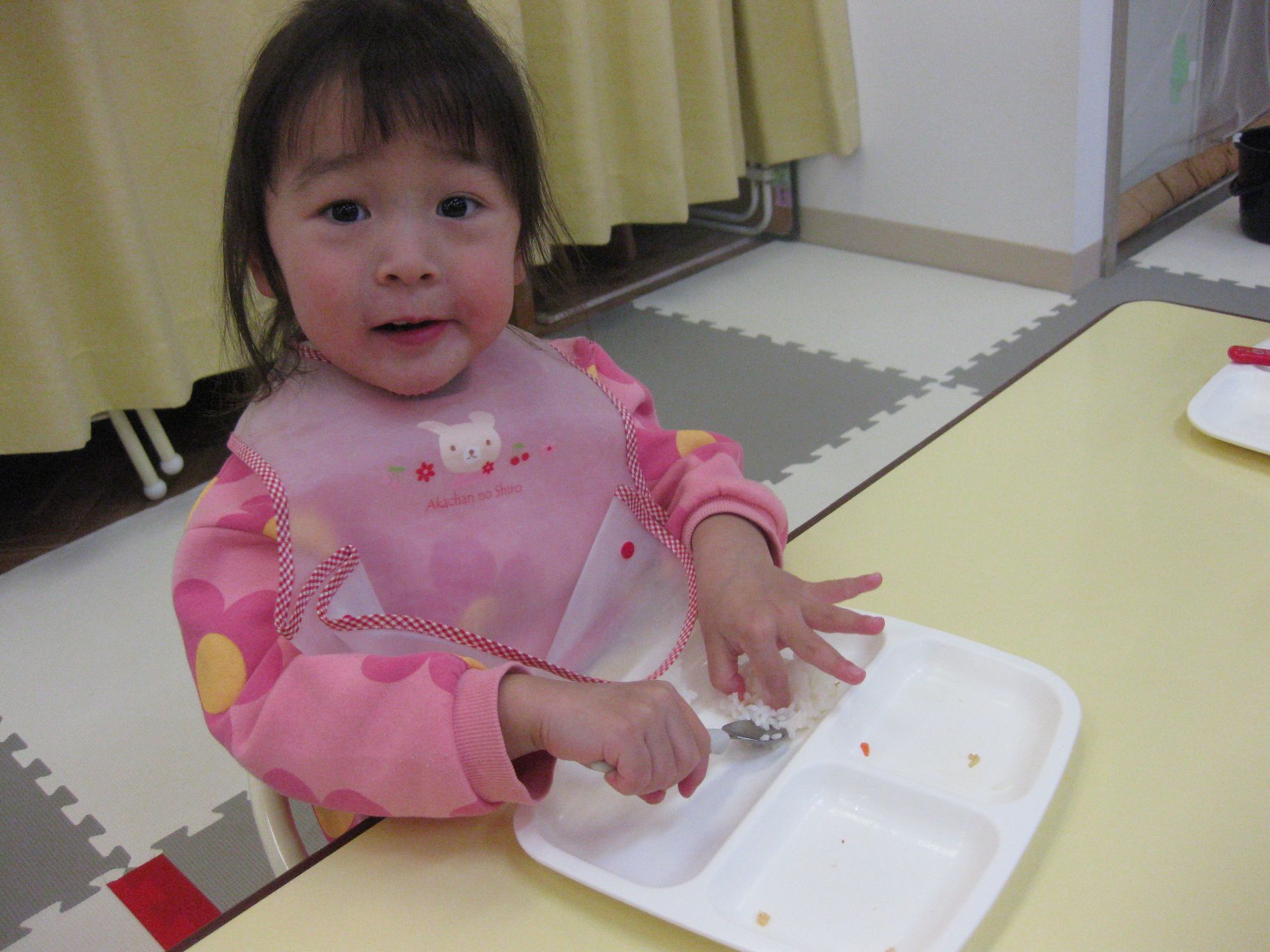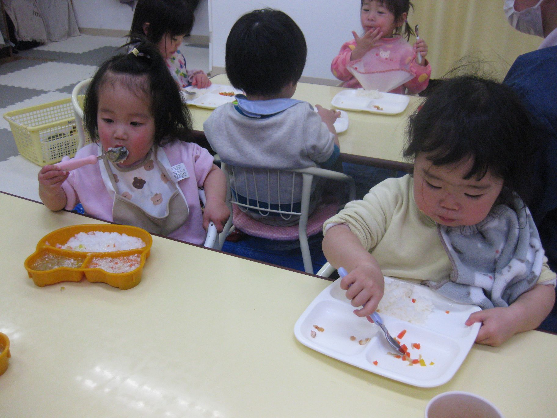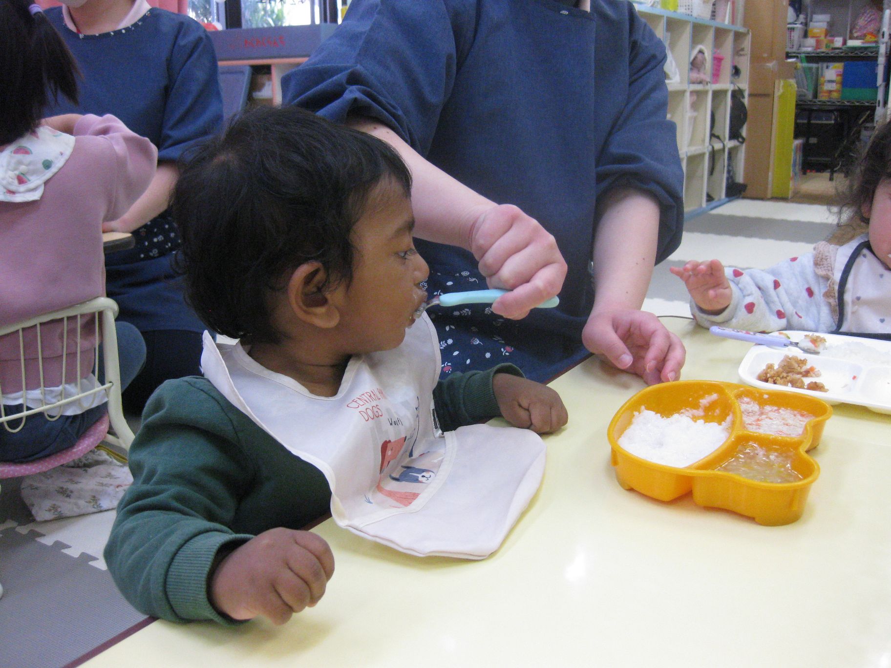 ひよこ組のお友達はスプーンで食べるのが上手になってきました👏