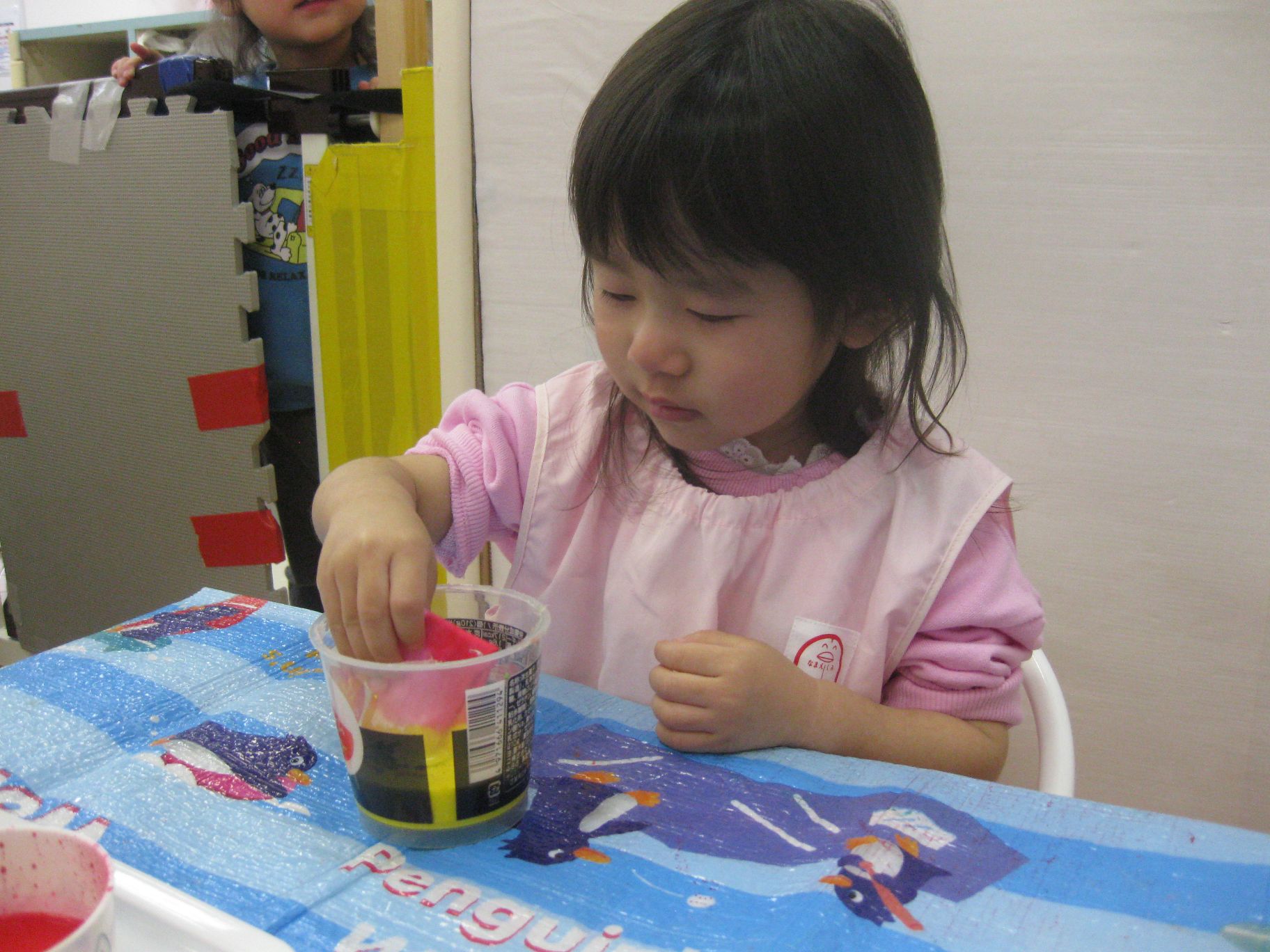 真剣なお顔で染まっていく紙を見つめていました👀