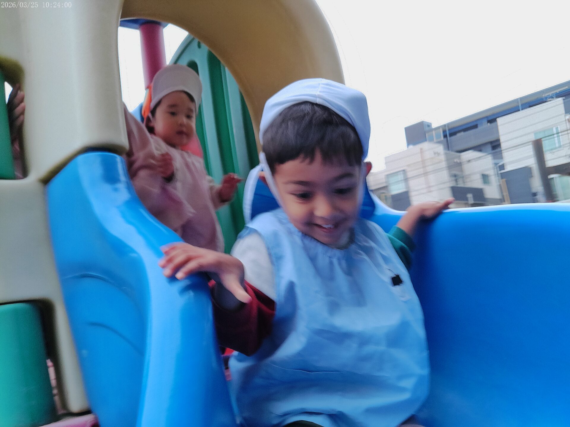 今年度、初めて来たので「どうぞ」と言うとみんな勢いよく遊んでいました。