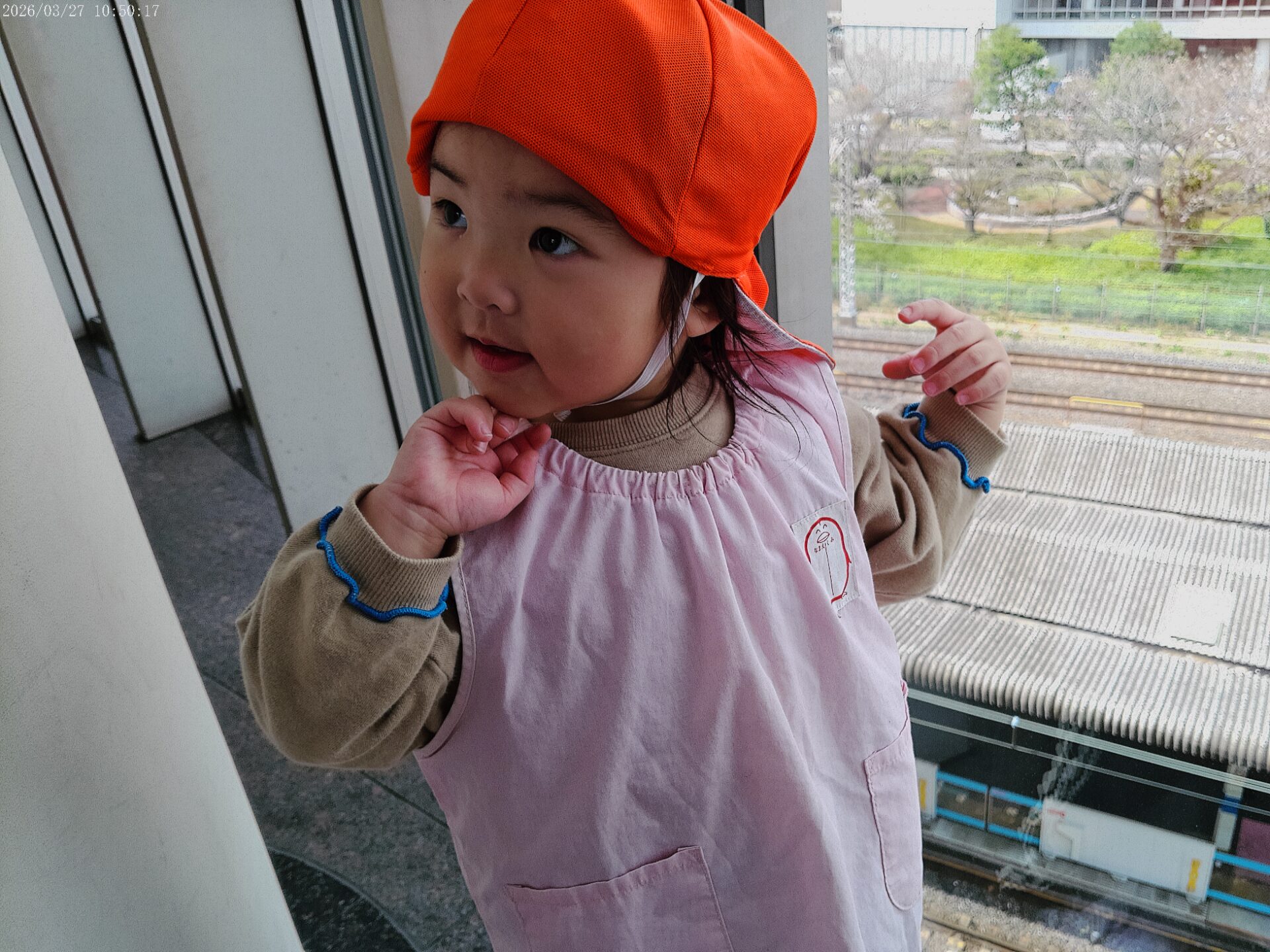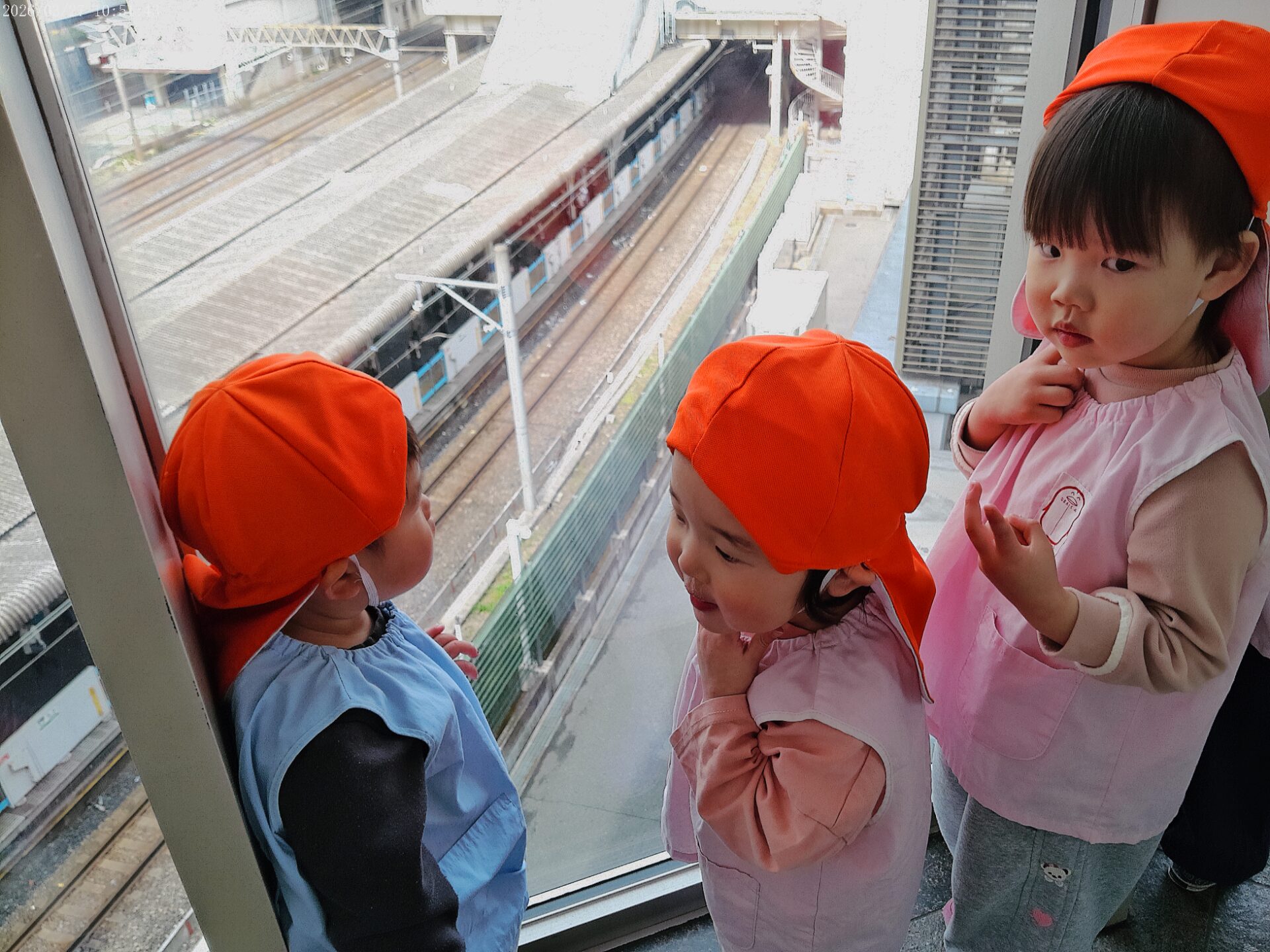 京浜東北線がなかなか来ないと、「でんしゃ、来ないよー🚃」と先生や友達と一緒にお話ししながら、待っていて、ガラスの所にしゃがんでじっとホームを見つめて待っている姿が可愛かったですよ💕