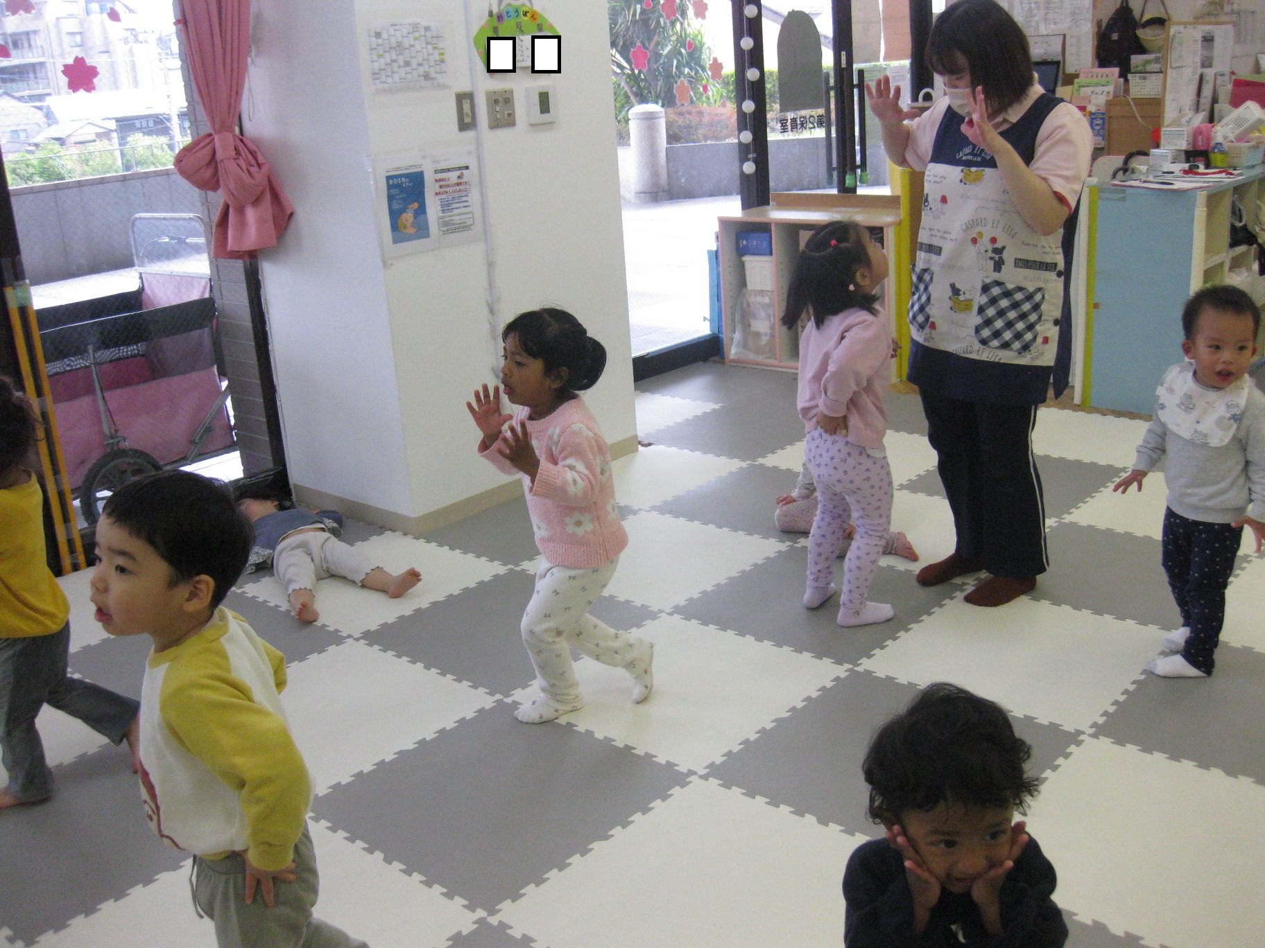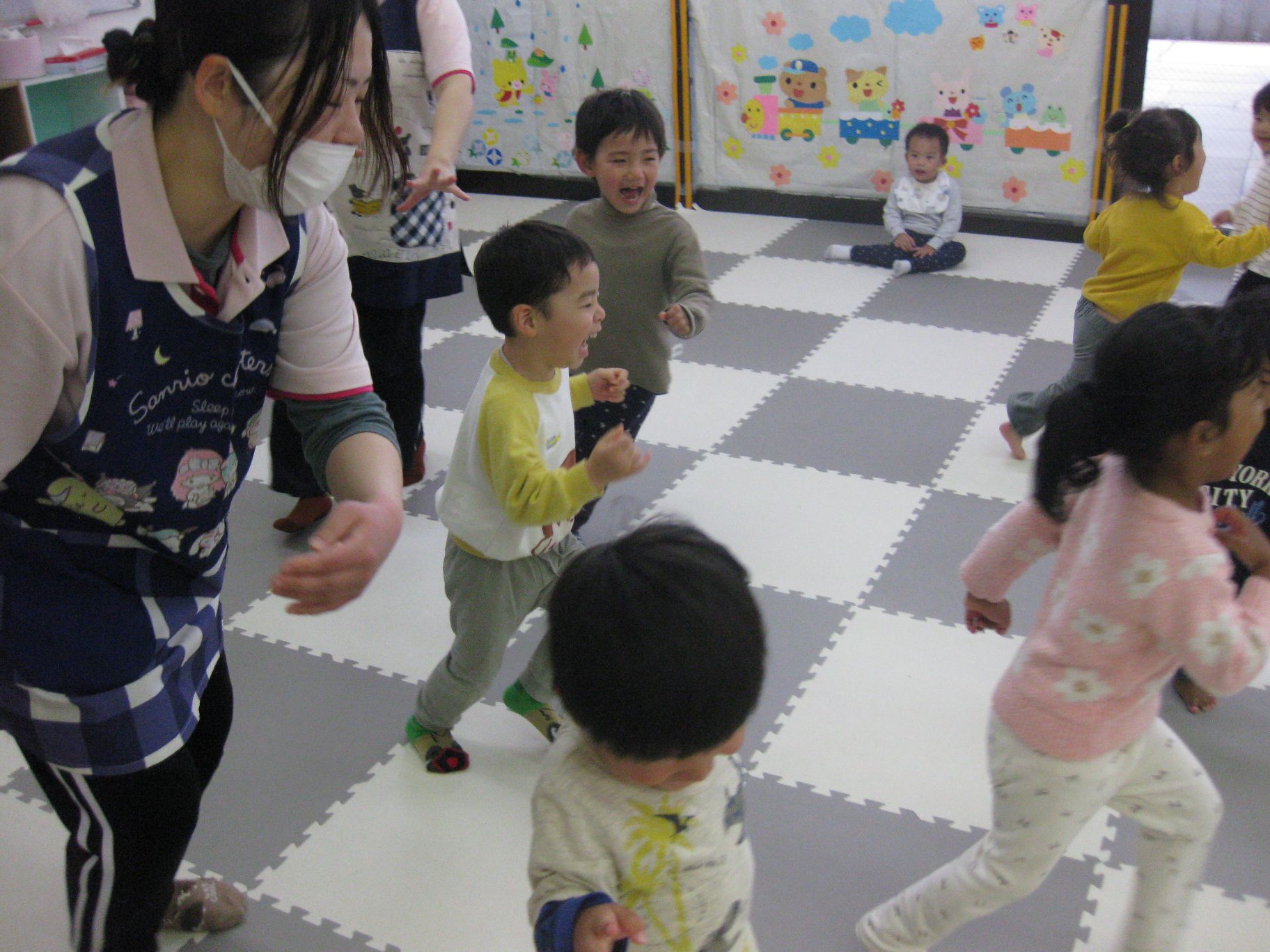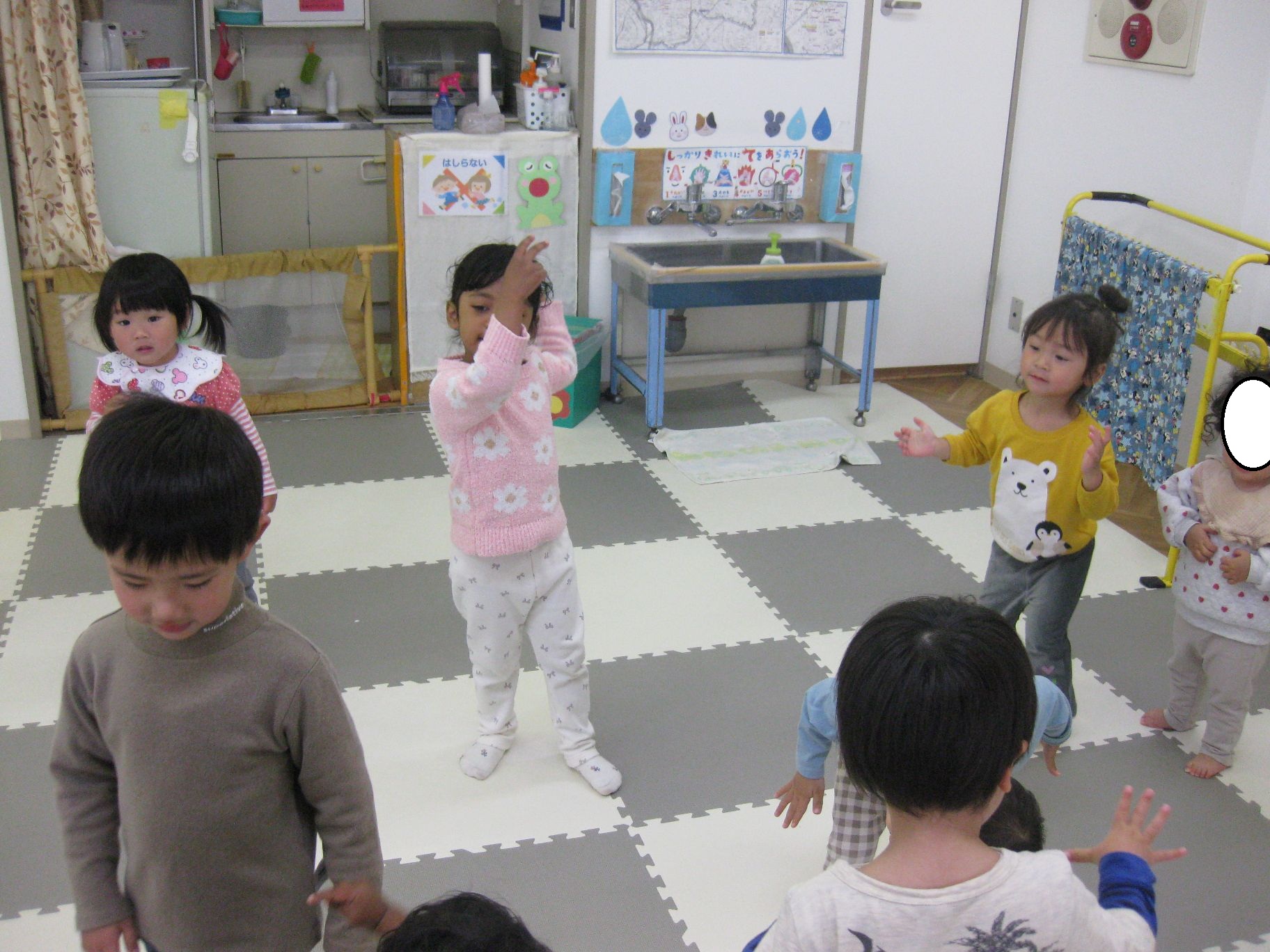 まずはリズム体操💪エビカニクス、サンサン体操、オオカミさんをしました🐺