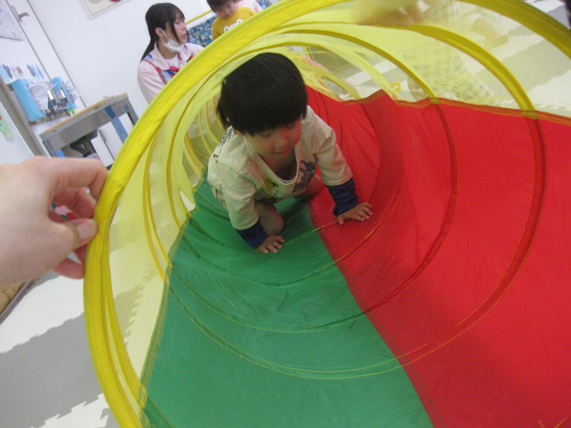 お友達がトンネルをくぐっていると、外から「お~い!」と声をかけるお友達もいましたよ😆